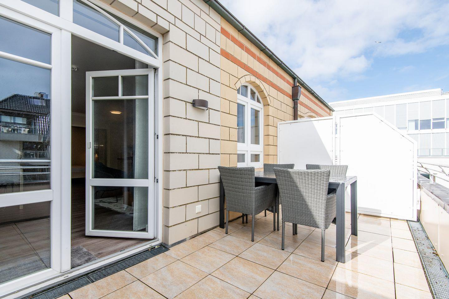Moderne 1 1/2-Zimmer-Ferienwohnung in Westerland mit Dachterrasse und Wellnessbereich nur 300 m vom Strand entfernt.