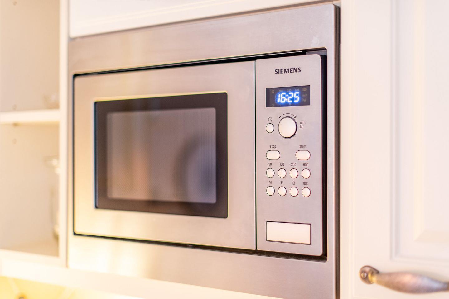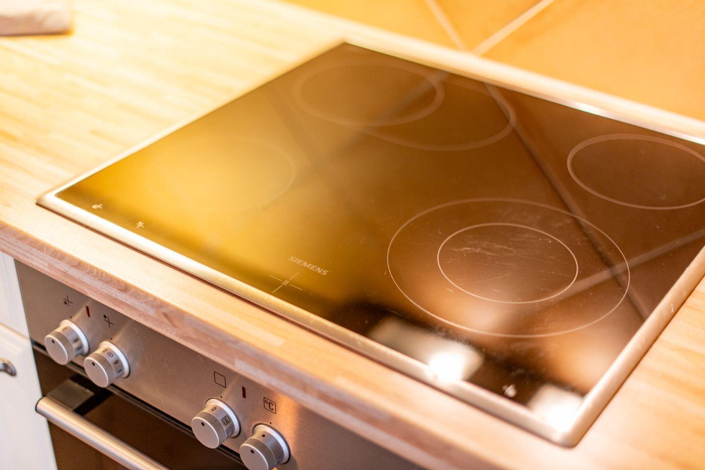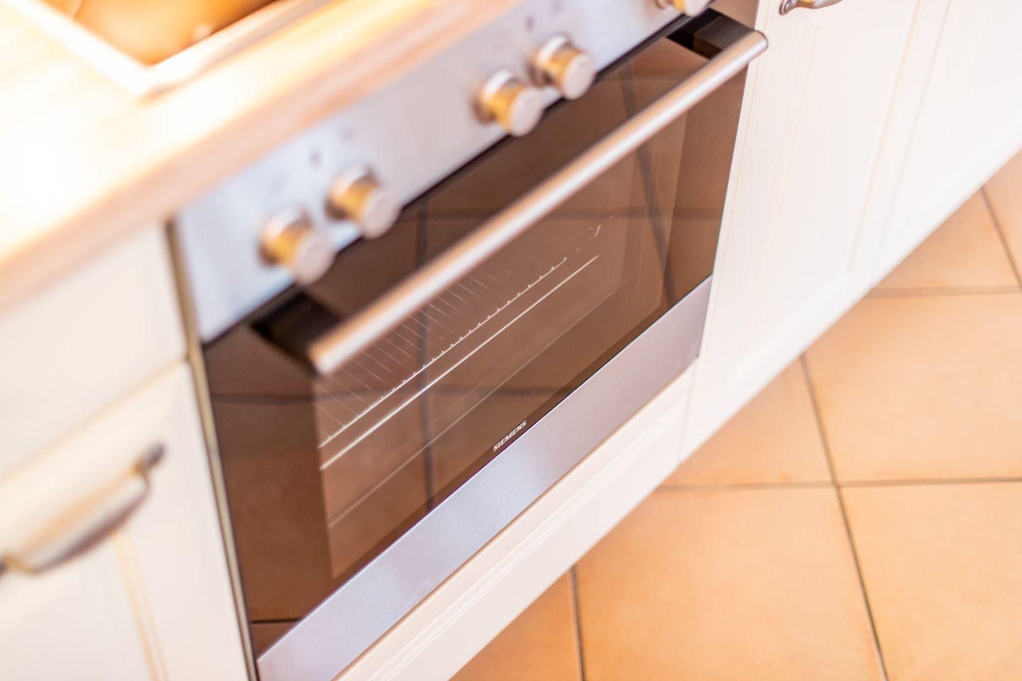 Moderne Küche mit Backofen, Herd, Geschirrspüler und allen notwendigen Annehmlichkeiten für den perfekten Kochkomfort.