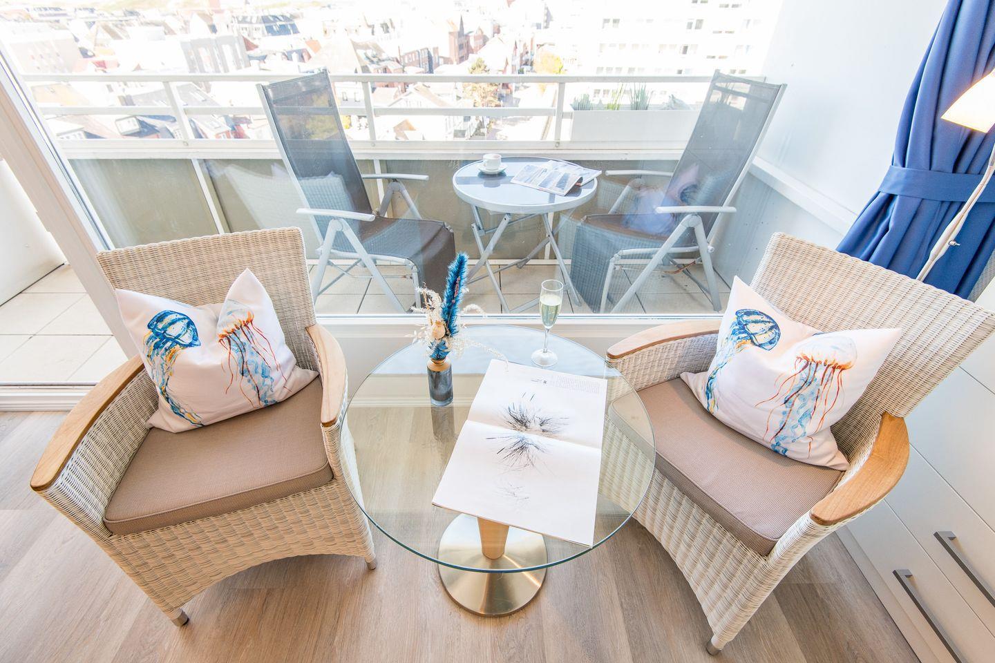 Gemütliche 1-Zimmer-Ferienwohnung im 8. OG mit Meerblick und Balkon in Westerland, nah am Strand und der Promenade.