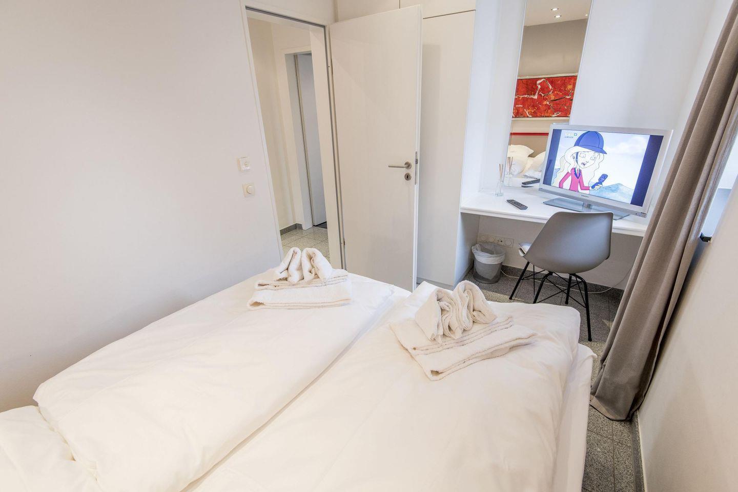 In den beiden gemütlichen Schlafzimmern erwartet Sie ein erholsamer Schlaf. Das Hauptschlafzimmer ist mit einem Doppelbett (2x 90x200 cm), einer geräumigen Schrankwand und einem TV ausgestattet. Das zweite Schlafzimmer bietet ebenfalls ein komfortables Doppelbett (2x 80x200 cm), einen Kleiderschrank und einen eigenen TV – perfekt für eine erholsame Nachtruhe oder eine entspannte Auszeit.