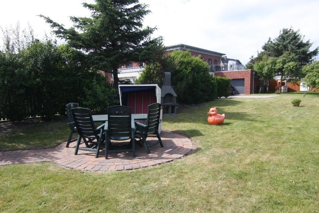 Zusätzlich zur großzügigen Dachterrasse steht Ihnen auch der gemeinschaftlich genutzte Garten mit Strandkorb und Gartenmöbeln zur Verfügung. Hier können Sie die frische Nordseeluft genießen und sich im Grünen entspannen.