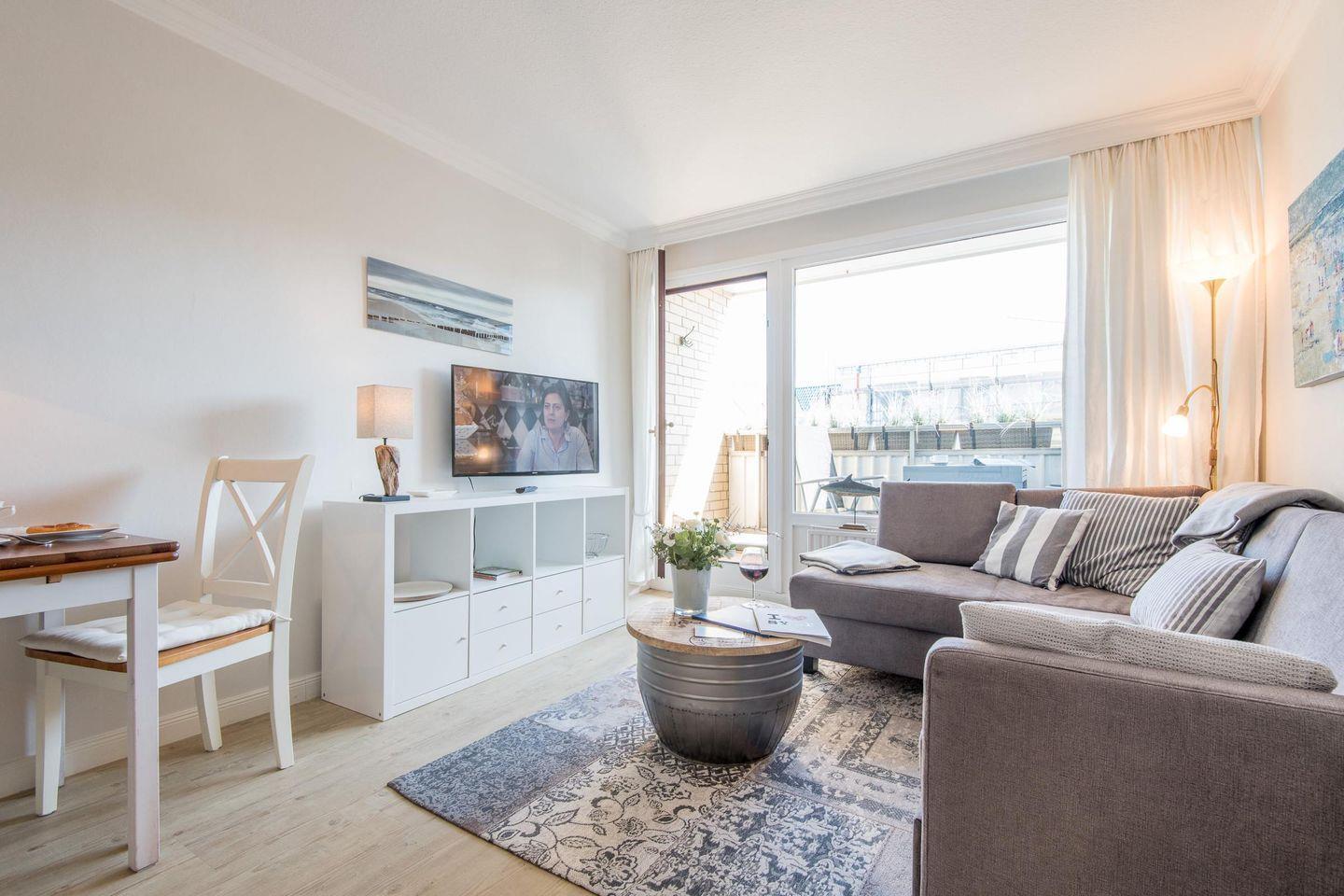 Gemütliche 2-Zimmer-Ferienwohnung in Westerland, zentral gelegen und nur 250 m vom Strand entfernt, mit Balkon und eigenem Parkplatz.
