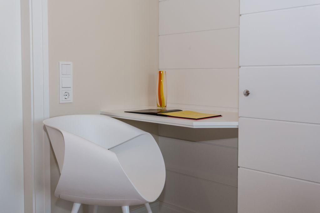 Ein Einbauschrank im Eingangsbereich bietet zusätzlichen Stauraum. Ein PKW-Stellplatz direkt am Haus sowie kostenloses WLAN (ohne Gewähr). Diese Wohnung ist ausschließlich für Erwachsene konzipiert, Haustiere sind nicht gestattet.