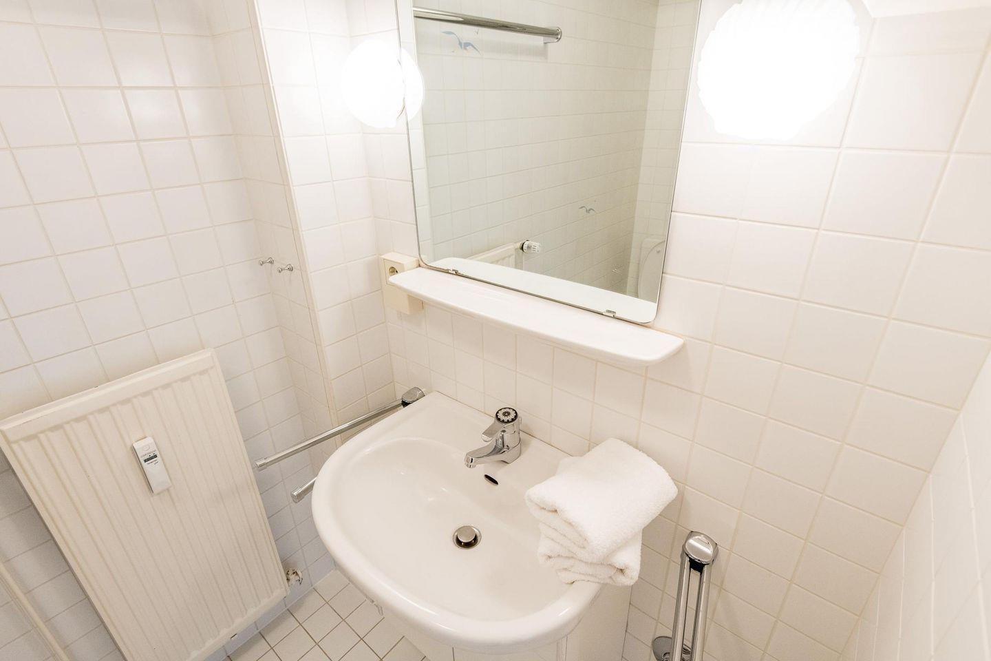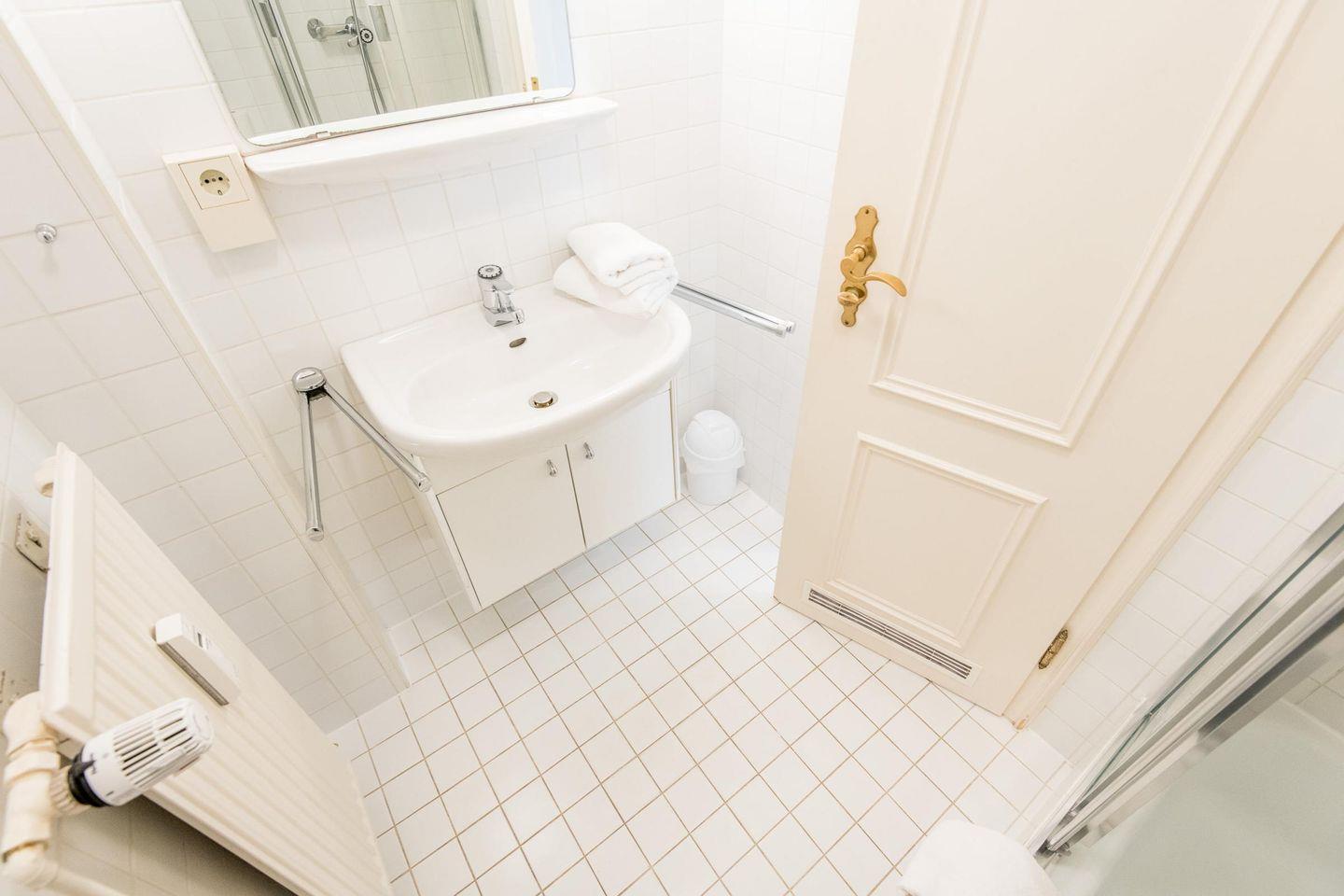 Das Badezimmer ist mit einer Dusche, WC und einem Föhn ausgestattet und sorgt für ein komfortables Duscherlebnis.