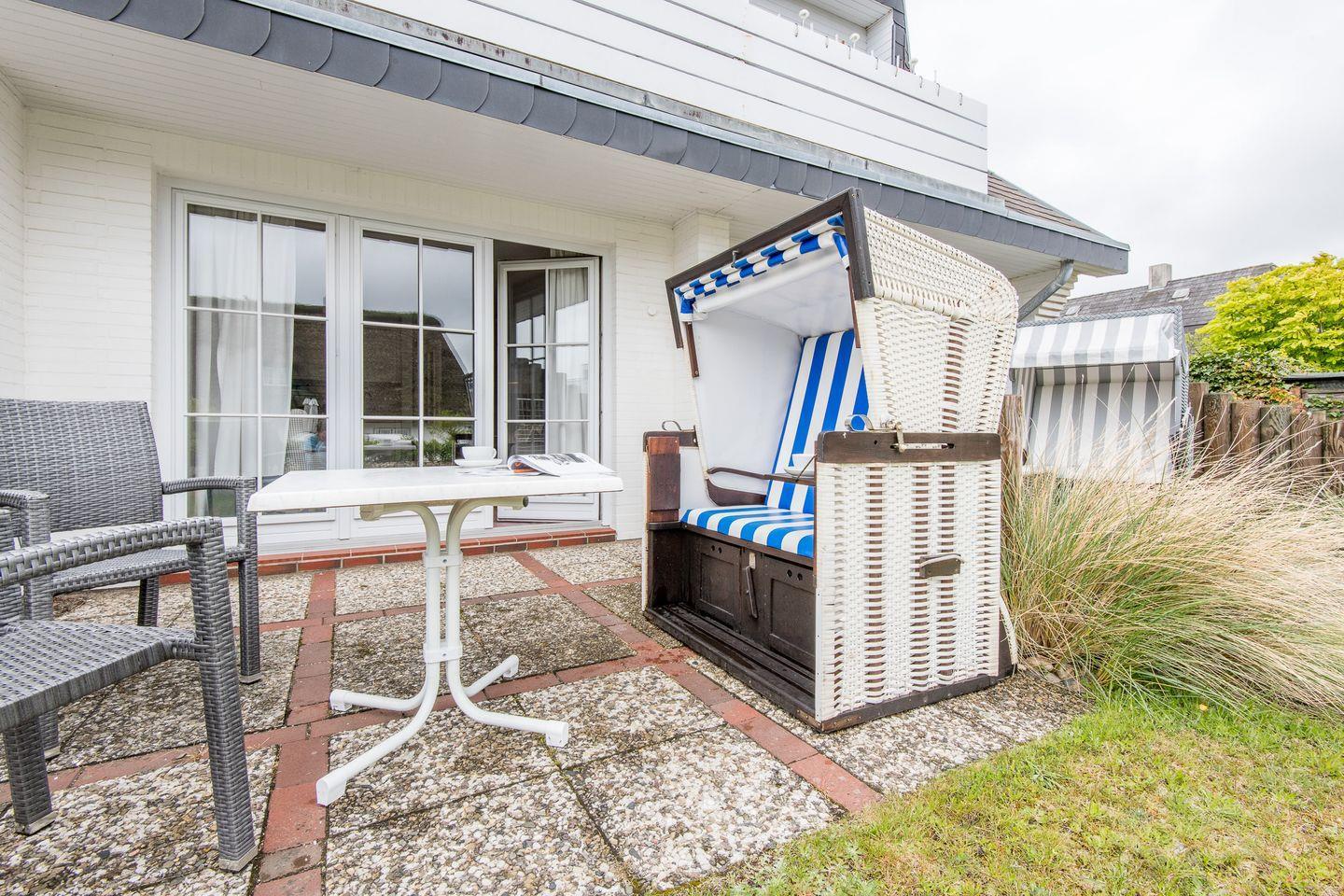 Moderne 2-Zimmer-Ferienwohnung mit Süd-Terrasse und WLAN in zentraler Lage Westerlands, strandnah und haustierfreundlich.