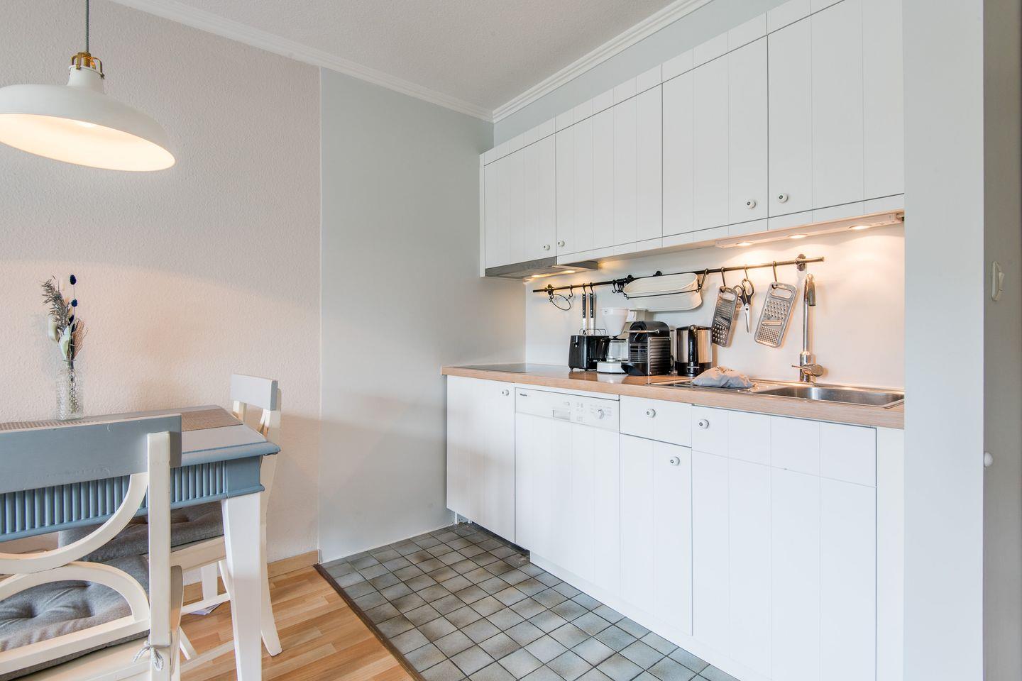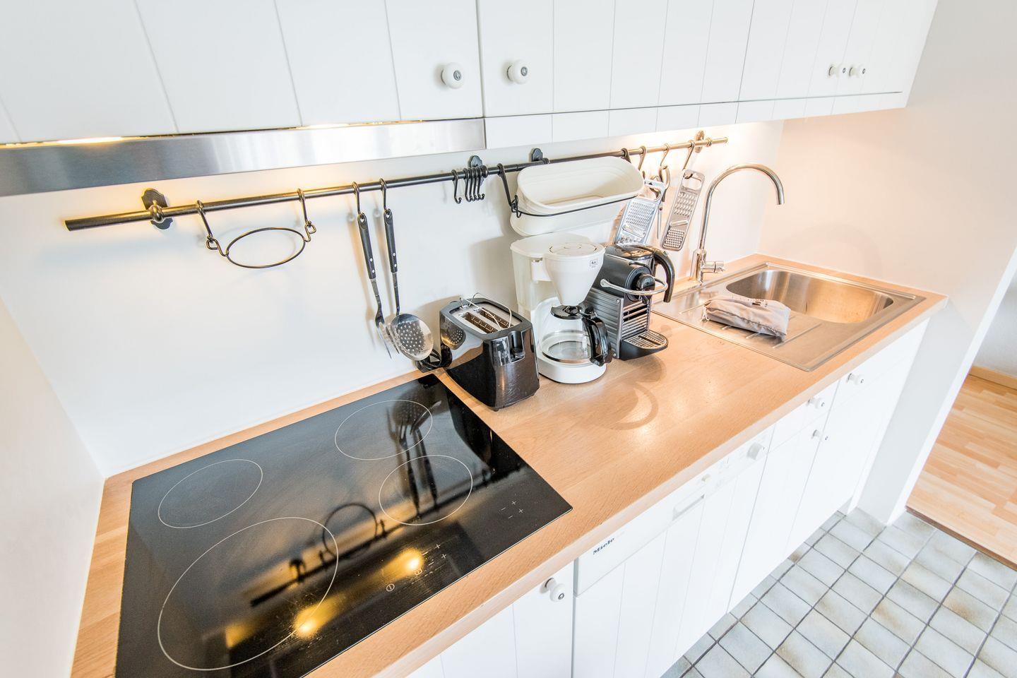 Die offene Küche ist mit einem 4-flammigen Herd, Geschirrspüler, Filterkaffeemaschine und weiteren Annehmlichkeiten ausgestattet und bietet alles, was Sie für den täglichen Komfort benötigen.