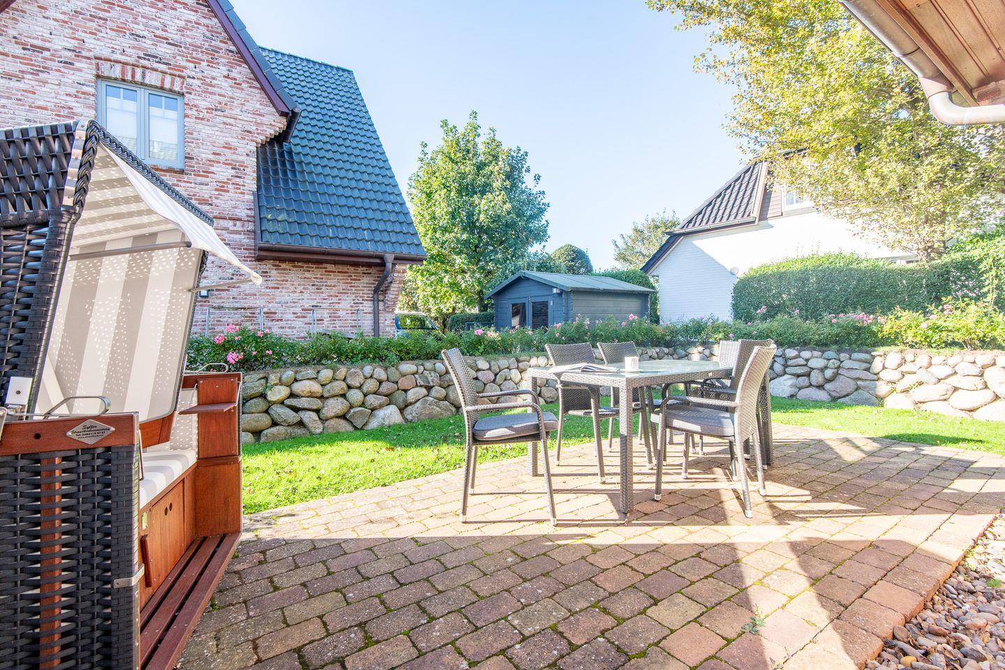 Exklusive Ferienhaushälfte in Westerland mit Sauna, Süd-Terrasse und privatem Garten für erholsame Urlaubstage.