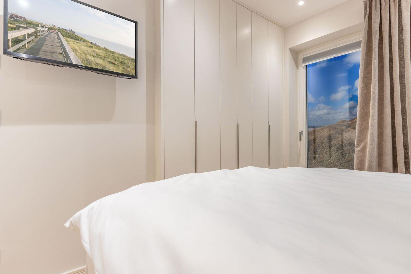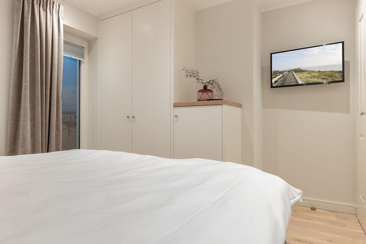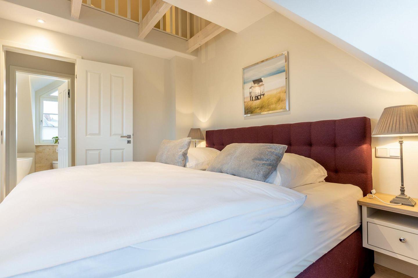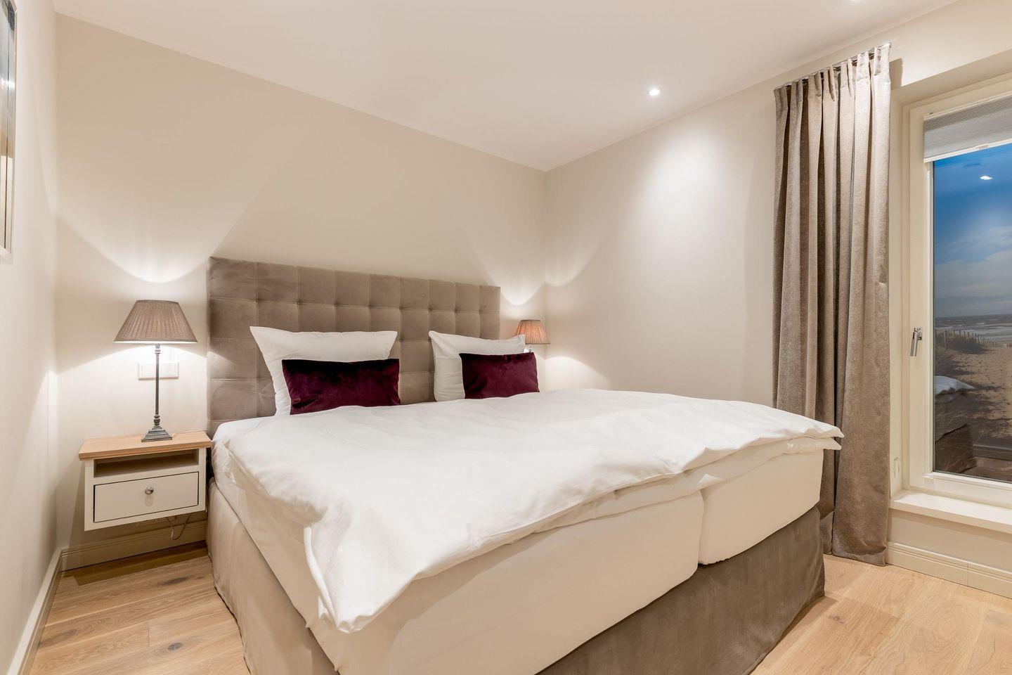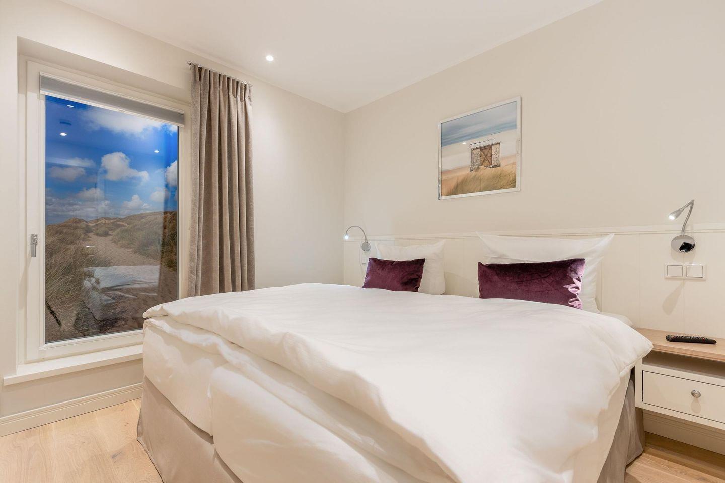 Das Haus verfügt über drei Schlafzimmer, die jeweils mit hochwertigen Hotelboxspringbetten (1x 200x200 cm, 2x 180x200 cm), Smart-TVs und Einbauschränken ausgestattet sind – ideal für erholsame Nächte.