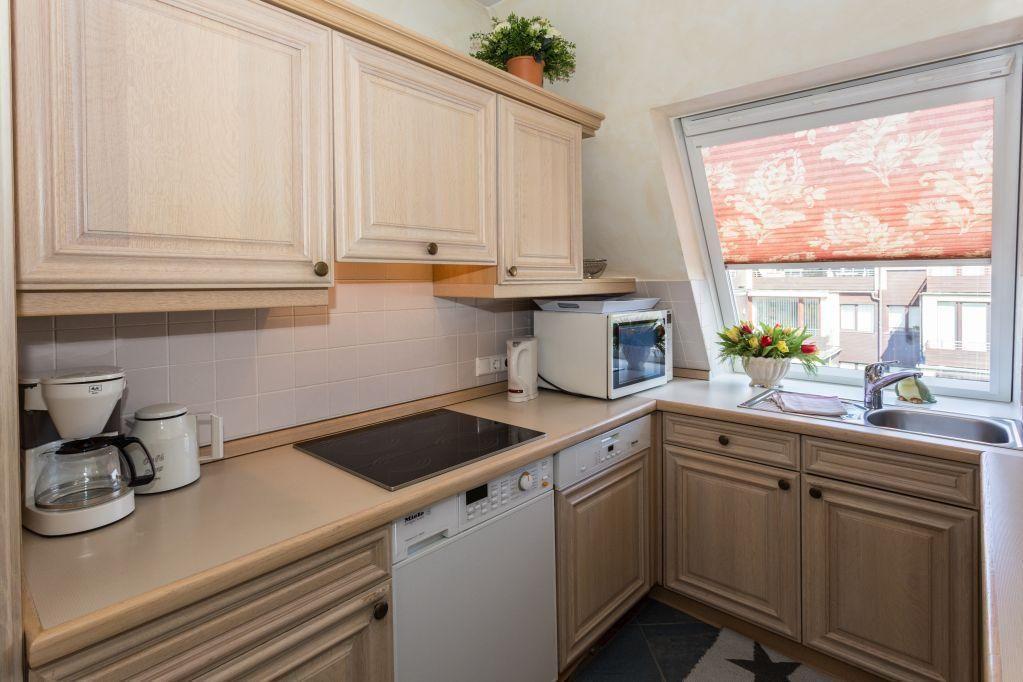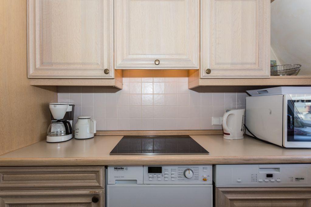 Die separate Küche ist modern ausgestattet und verfügt über einen Induktionsherd, eine Filterkaffeemaschine sowie eine Mikrowelle mit Grillfunktion – alles, was Sie zur Zubereitung Ihrer Lieblingsspeisen benötigen.