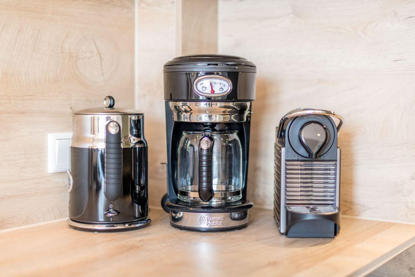 Die offene, voll ausgestattete Küche verfügt über einen Geschirrspüler, einen Backofen und alles, was Sie für Ihre Urlaubsküche benötigen.