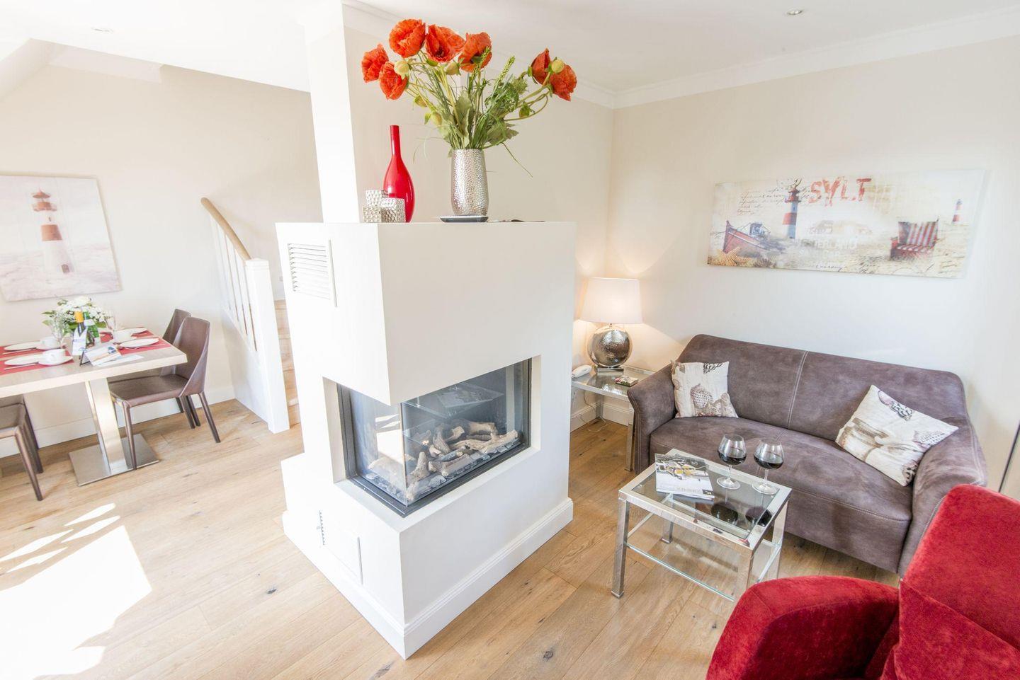 Diese exklusive 3-Zimmer-Ferienwohnung im 'Haus Victor' bietet auf ca. 58 m² und über zwei Ebenen modernen Komfort und eine gemütliche Ausstattung für bis zu 4 Personen. Die strandnahe Lage in Westerland auf Sylt und der hauseigene Wellnessbereich mit Sauna und Dampfbad bieten eine perfekte Kombination aus Entspannung und Aktivität. Die Wohnung verfügt über einen Gaskamin und einen Süd-Balkon, auf dem Sie die Sylter Sonne genießen können.