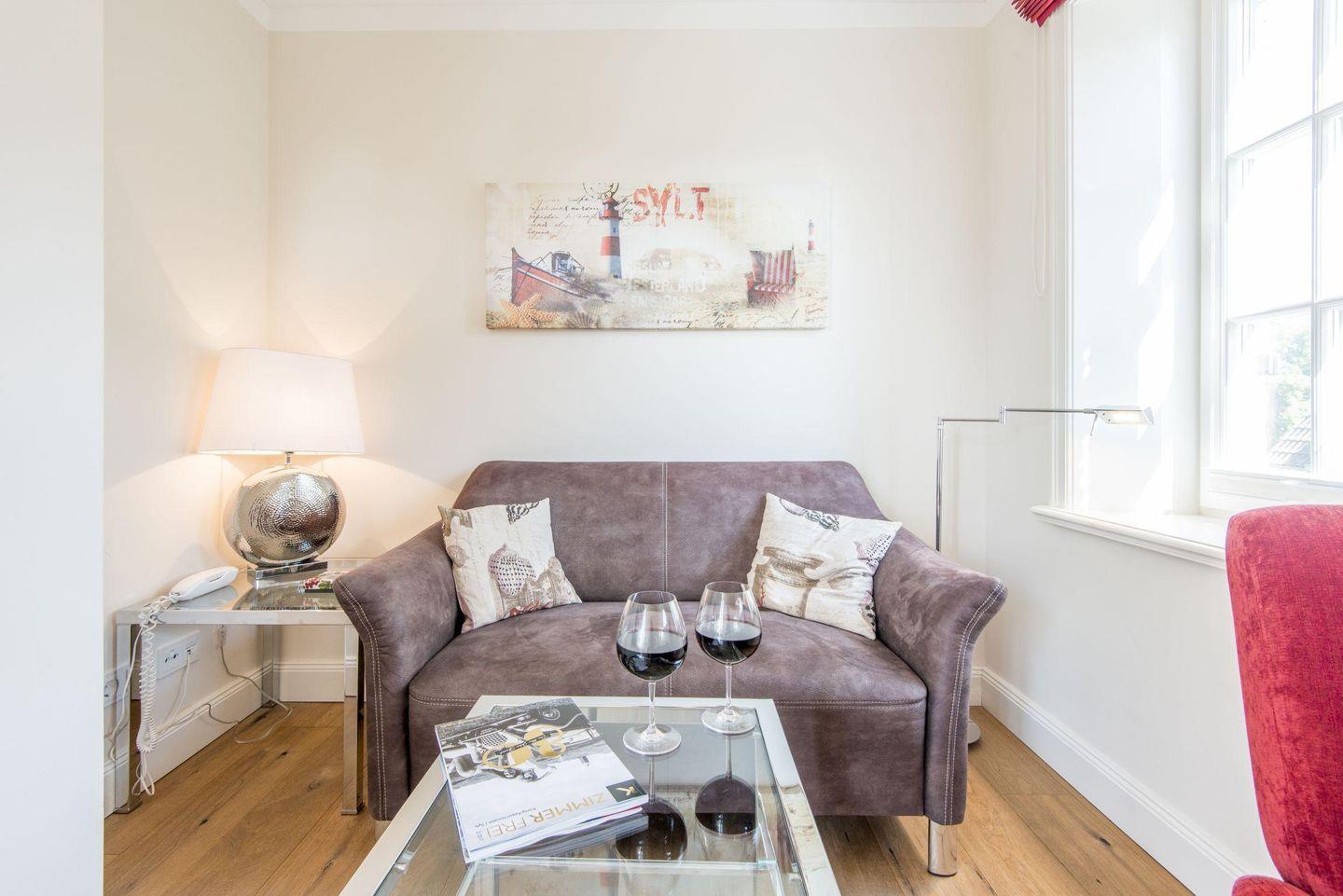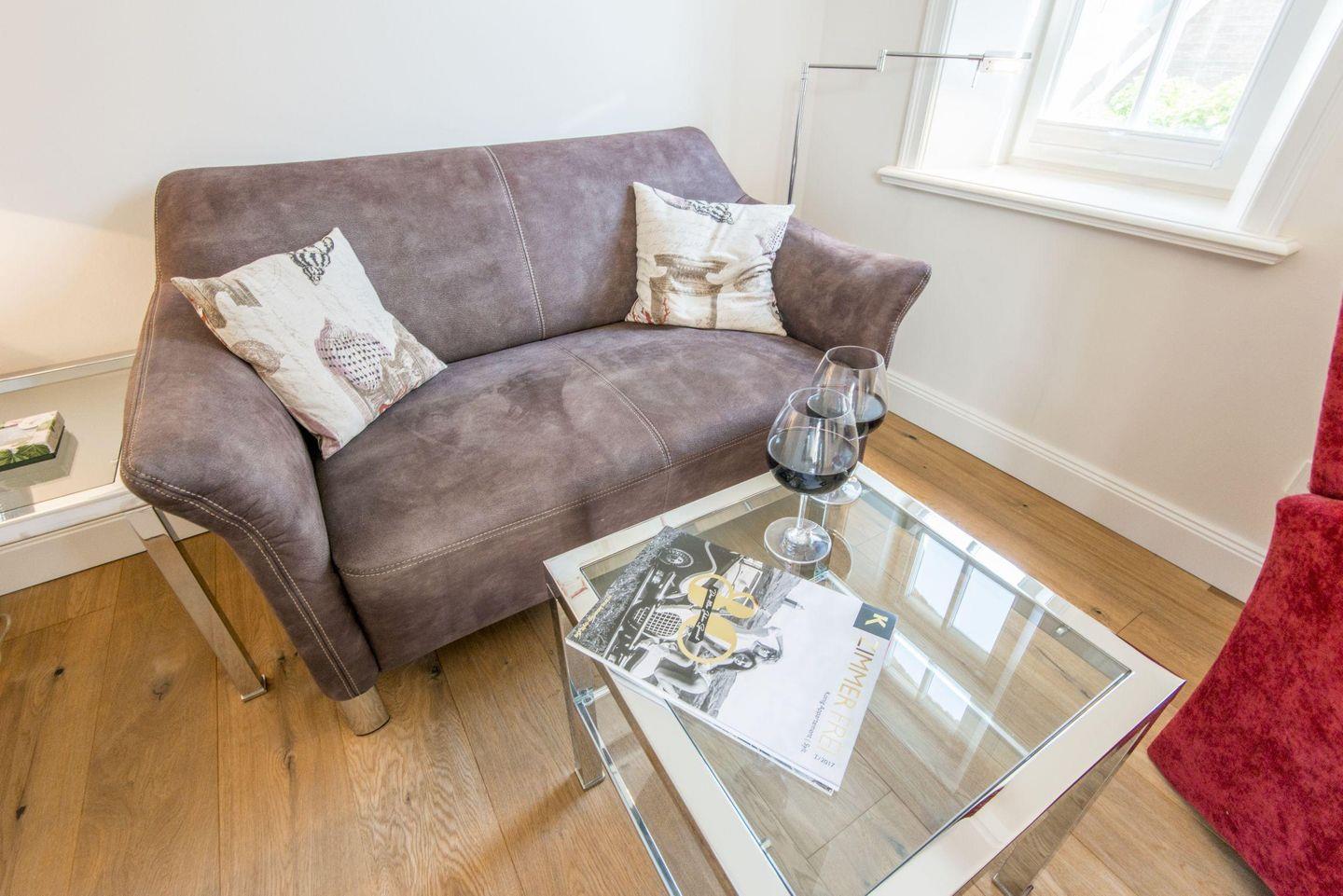 Exklusive 3-Zimmer-Ferienwohnung mit Wellnessbereich und Süd-Balkon in Westerland, nahe Strand und Stadtzentrum.