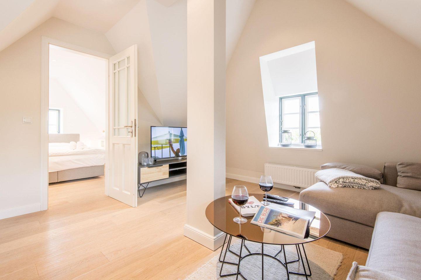 Diese geschmackvoll eingerichtete 3-Zimmer-Ferienwohnung im 'Huus Trift' bietet auf ca. 80 m² und zwei Ebenen exklusiven Komfort für bis zu 4 Personen. Das historische Reetdach-Anwesen in zentraler Lage in Westerland verbindet ein gemütliches Ambiente mit moderner Ausstattung und stilvoller Einrichtung. Die Nichtraucherwohnung bietet dank hochwertiger Harman und Kardon Bluetooth Lautsprecher ein perfektes Klangerlebnis. Hunde sind herzlich willkommen.