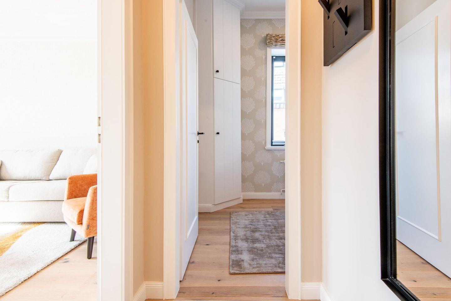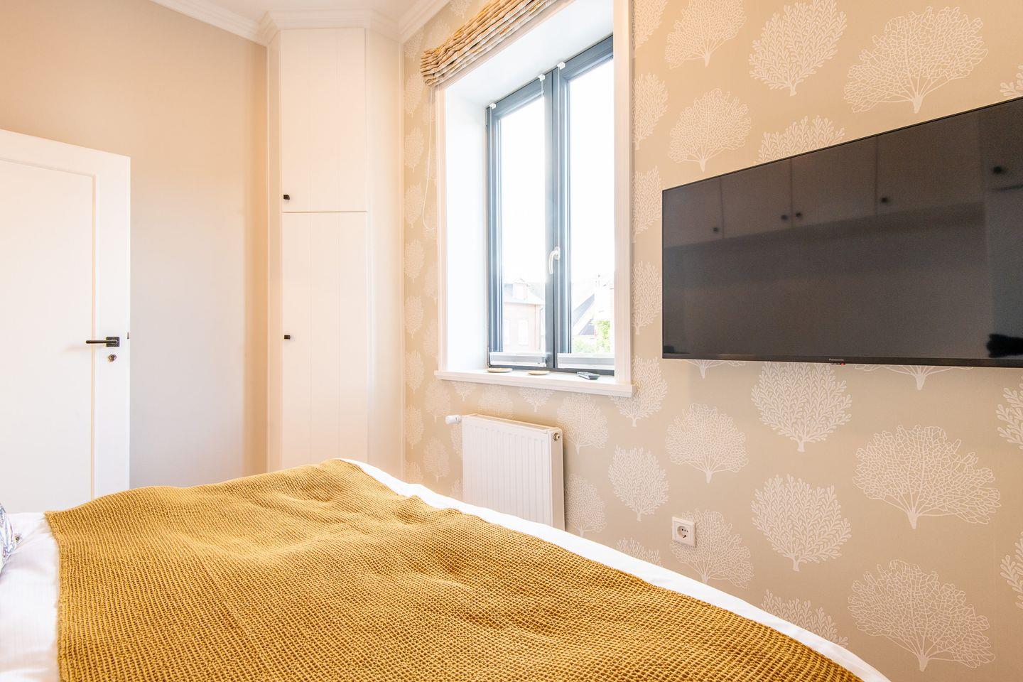 Das Schlafzimmer ist mit einem bequemen Boxspringbett (180x200 cm) und einem geräumigen Kleiderschrank ausgestattet, der reichlich Platz für Ihre Garderobe bietet. Das Badezimmer bietet eine moderne Dusche, WC, Föhn und einen Handtuchwärmer für zusätzlichen Komfort nach einem erlebnisreichen Tag.