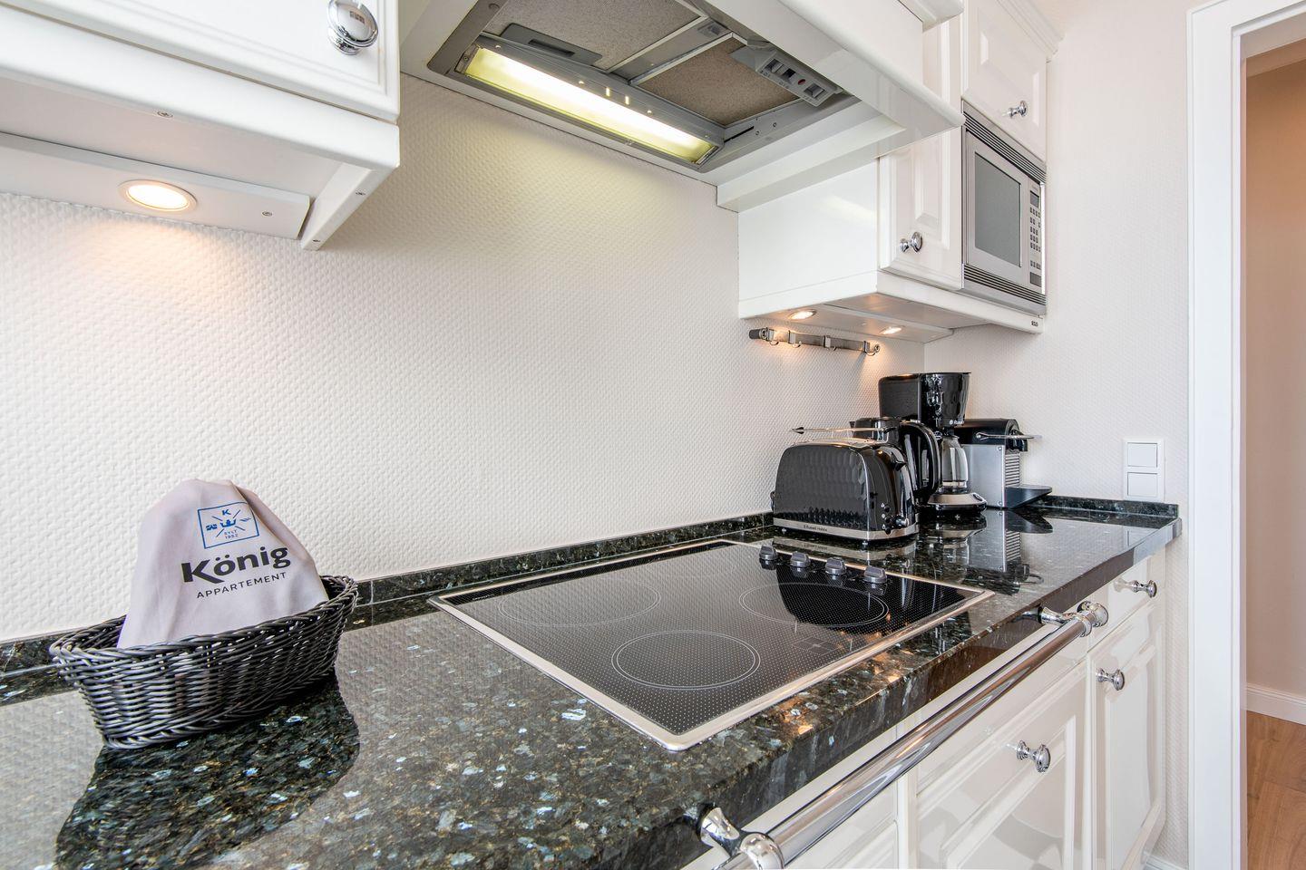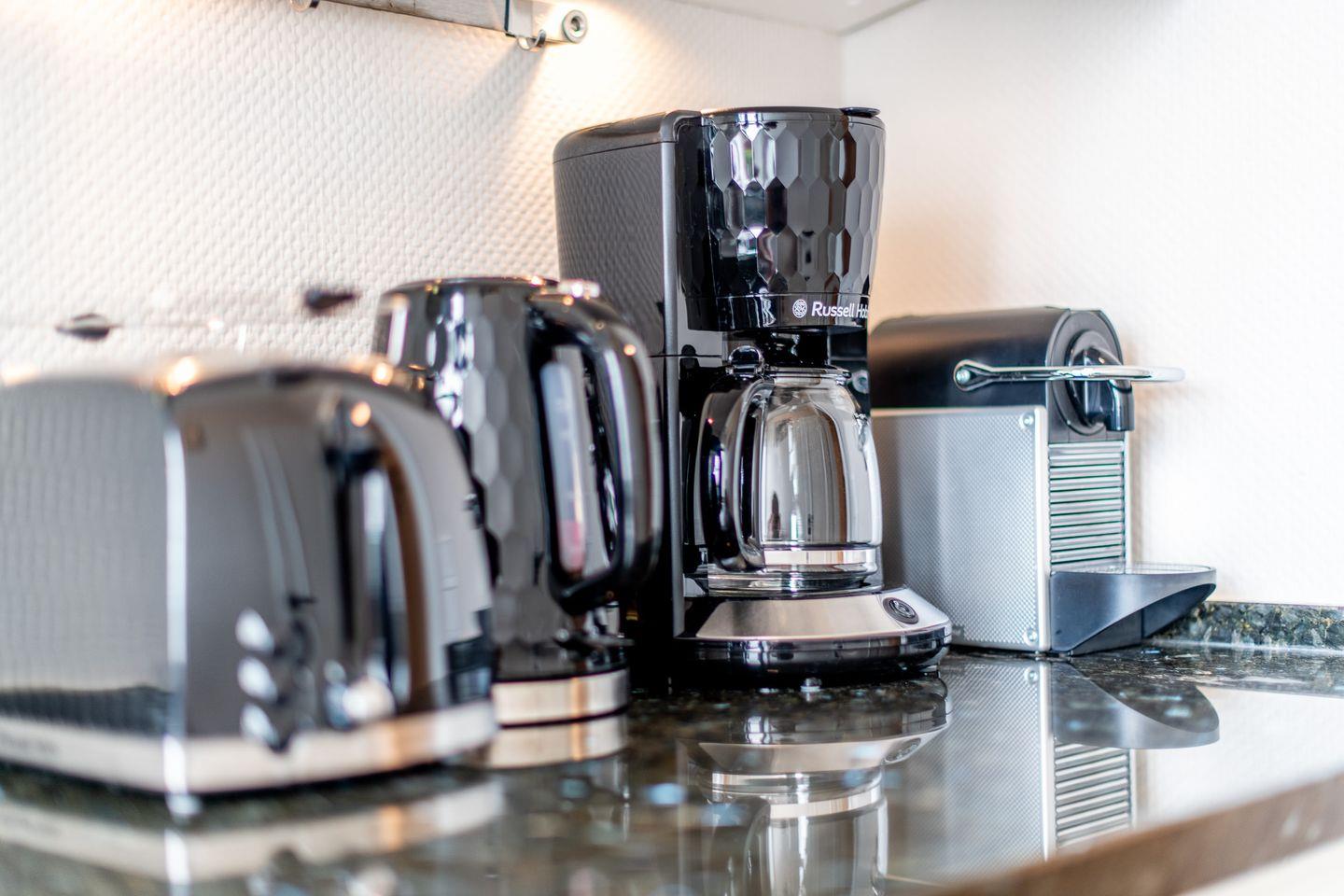 Die separate, moderne Küche mit Granitarbeitsplatte ist bestens ausgestattet und bietet Ihnen ein Cerankochfeld, einen Geschirrspüler, eine Filterkaffeemaschine und alle notwendigen Küchengeräte, um Ihre Lieblingsgerichte zuzubereiten.