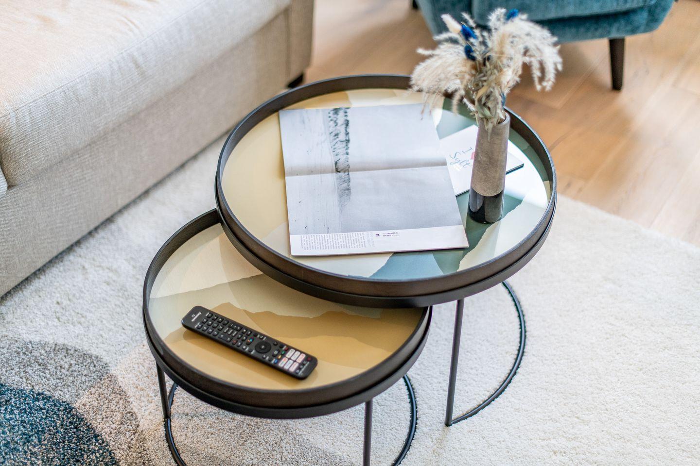 Das Wohnzimmer ist gemütlich und komfortabel eingerichtet und bietet eine Schlafcouch, die zusätzlichen Platz für einen weiteren Gast schafft. Eine einladende Essecke rundet den Wohnbereich ab und ist ideal für gemeinsame Mahlzeiten und entspannte Abende.