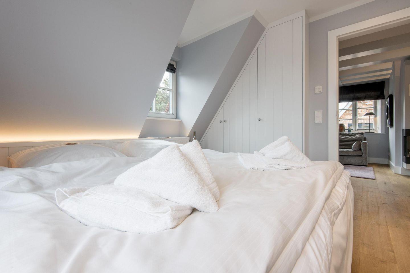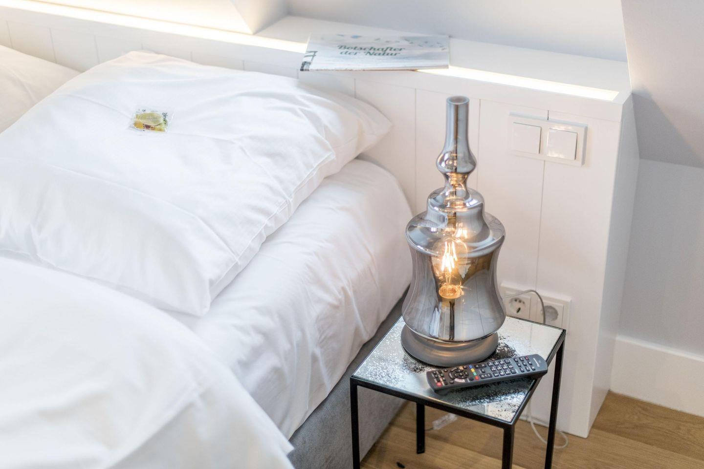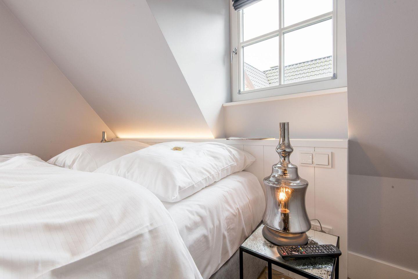 Das Schlafzimmer ist stilvoll eingerichtet und verfügt über ein hochwertiges Boxspringbett (160x200 cm) sowie einen weiteren TV. Hier können Sie sich entspannen und erholsame Nächte genießen.
