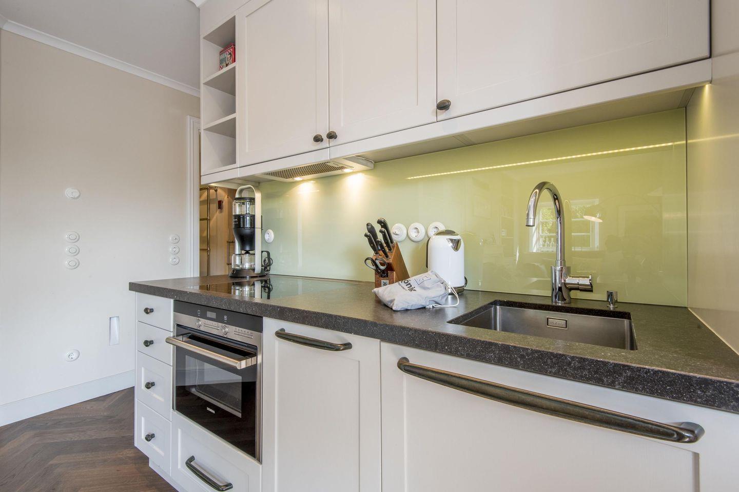 Die offene Küche ist modern ausgestattet und verfügt über einen Induktionsherd, Geschirrspüler und alle weiteren Annehmlichkeiten, die das Kochen zum Genuss machen.