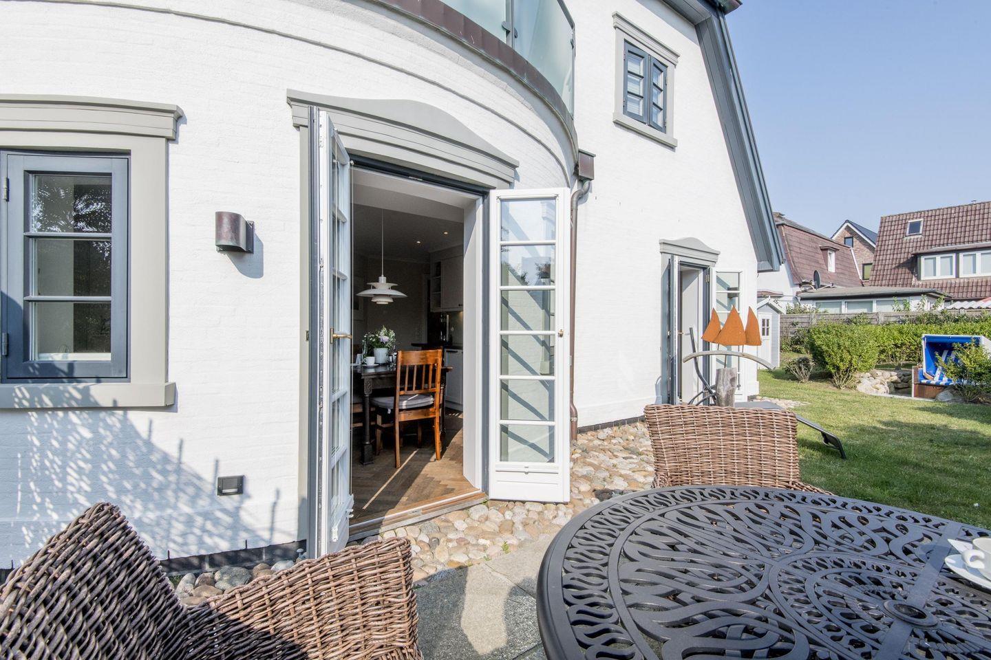 Willkommen in der stilvollen 2-Zimmer-Ferienwohnung 'Villa Aegir' mit ca. 53 m² auf einer Ebene im Erdgeschoss, geeignet für bis zu 4 Personen. Diese luxuriöse Wohnung bietet hochwertiges Eichenparkett, eine private Terrasse und einen sonnigen Garten, der nach Süden ausgerichtet ist – ideal für sonnige Stunden und erholsame Momente. Mit einer Lage nur 220 Meter vom Strand entfernt und nahe vieler angesagter Restaurants, Bäckerei und Fahrradverleih auf der gegenüberliegenden Straßenseite erleben Sie hier Entspannung und Komfort zugleich. Hunde sind herzlich willkommen.