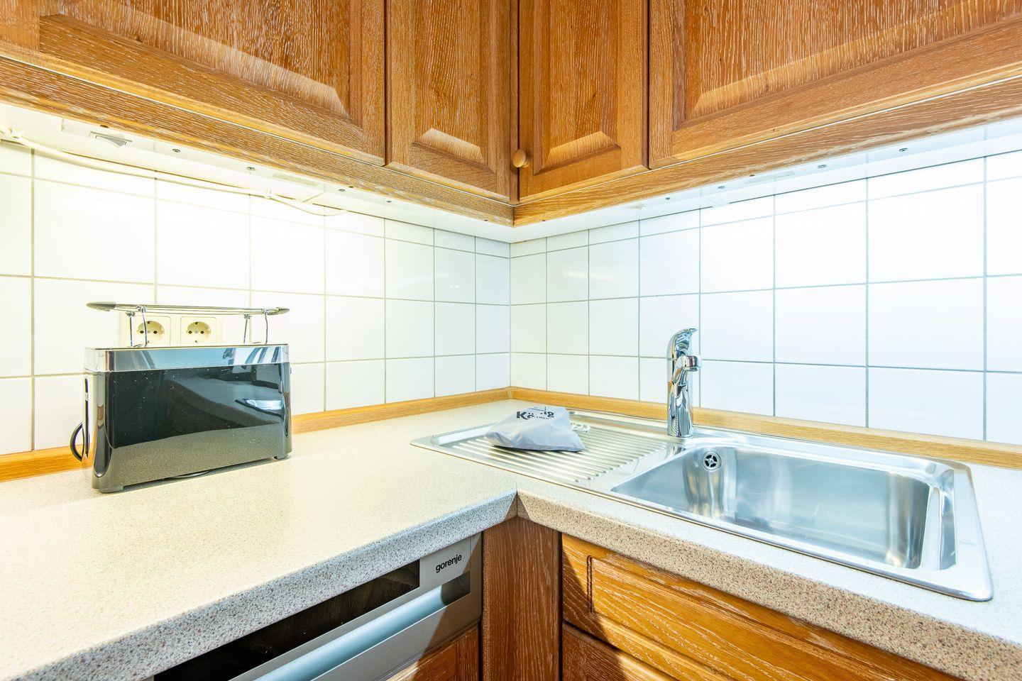 Die separate, voll ausgestattete Küche bietet alles, was Sie für die Selbstversorgung benötigen: ein modernes Ceranfeld, Filterkaffeemaschine und eine Nespresso-Maschine. Hier lassen sich komfortabel alle Mahlzeiten für einen entspannten Urlaubstag zubereiten.