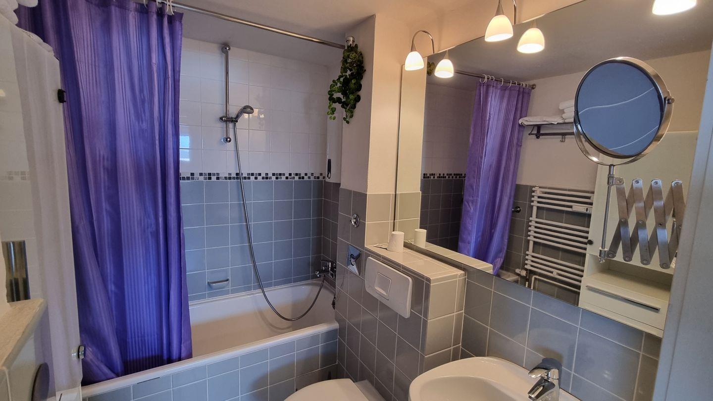 Ein weiteres Highlight der Wohnung ist das Badezimmer, das mit einer Badewanne ausgestattet ist. Nach einem ereignisreichen Tag können Sie sich hier zurückziehen und eine entspannende Auszeit genießen. Für zusätzlichen Komfort sorgt der vorhandene Haartrockner und der Spiegel, der Ihnen bei der morgendlichen Routine hilft.