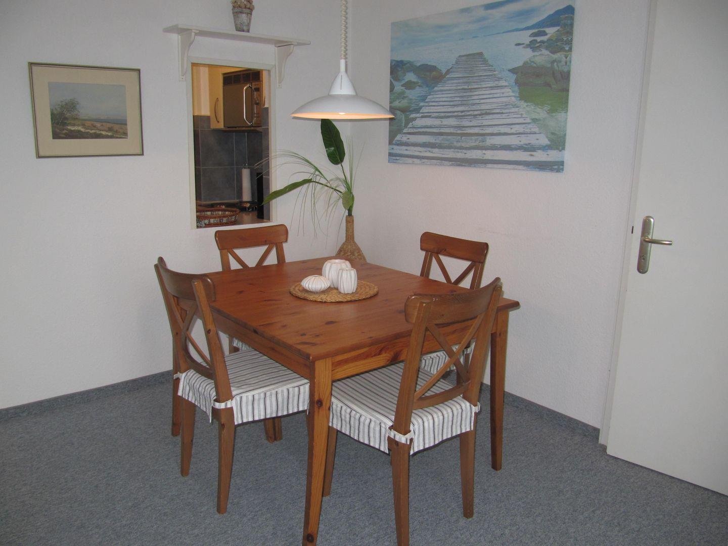 Nach einem erlebnisreichen Tag können Sie in der Wohnung die Seele baumeln lassen – sei es beim Entspannen auf dem Balkon mit Meerblick oder beim gemeinsamen Abendessen am Esstisch. Erleben Sie die Schönheit von Sylt in dieser komfortablen Unterkunft und lassen Sie den Alltag hinter sich.
