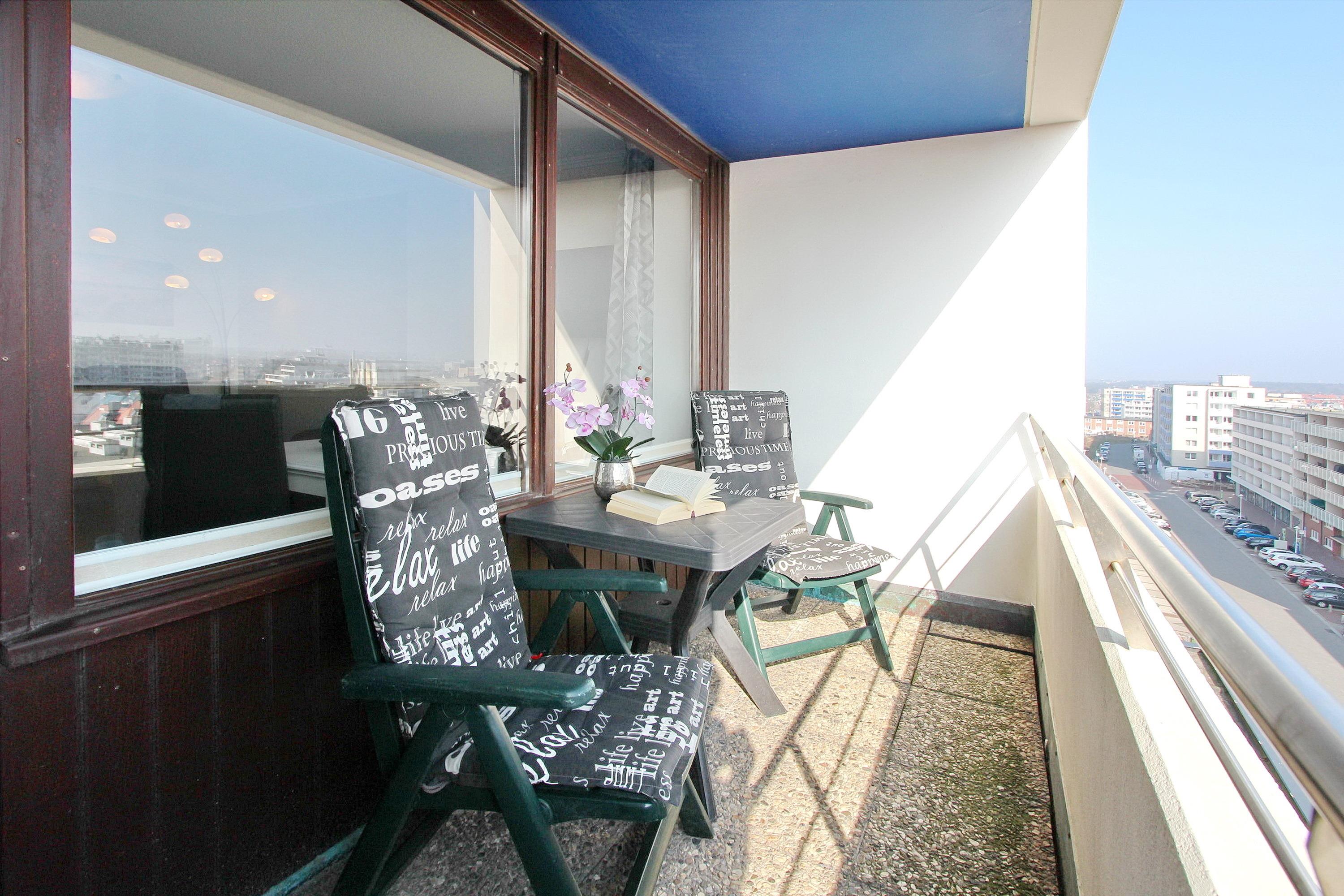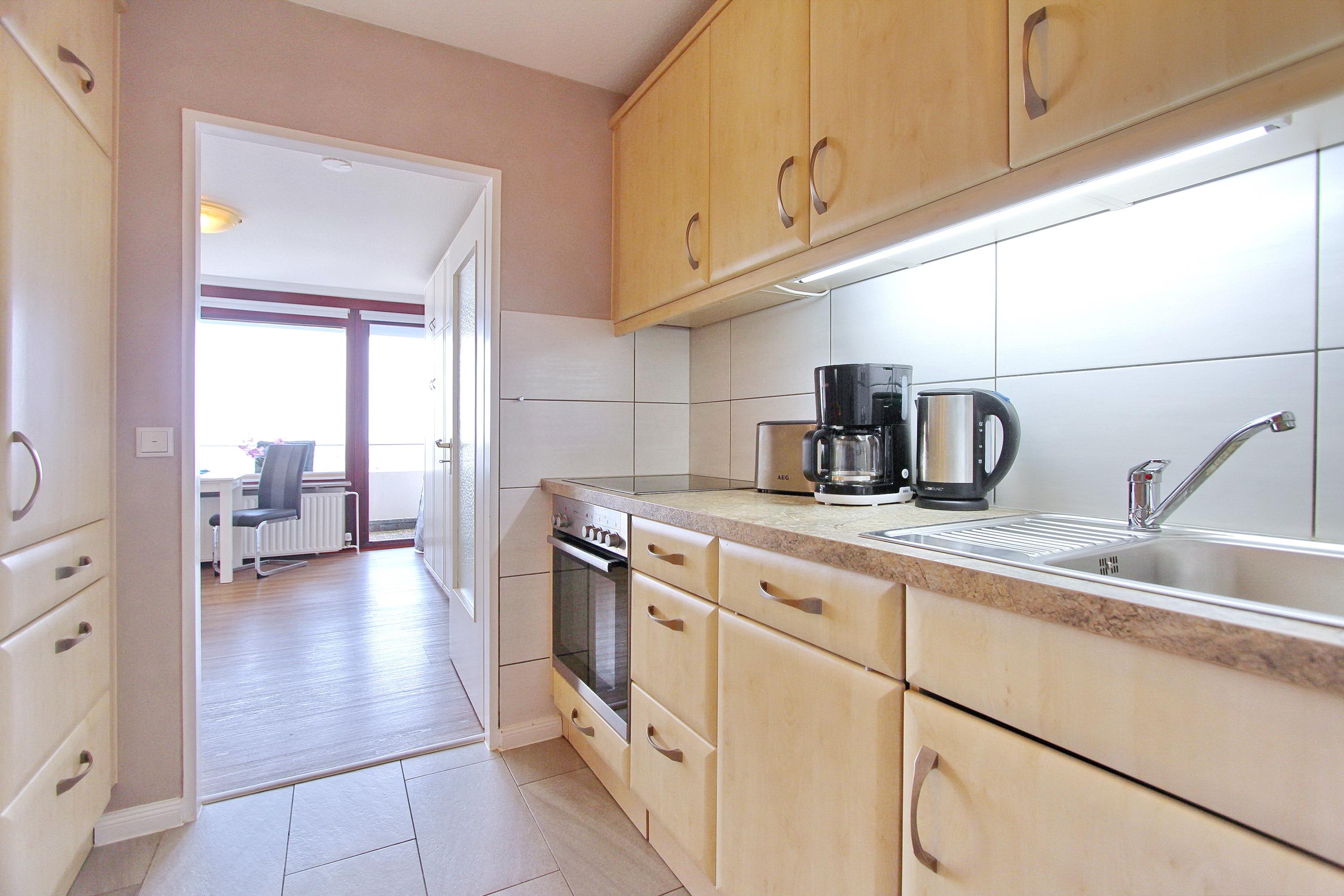 Diese mit viel Liebe zum Detail eingerichtete Einzimmerwohnung in der 5. Etage im Haus am Meer, liegt nur wenige Schritte vom Strand und Meer entfernt. Der hell und freundlich dekorierte Wohn-/Schlafraum verfügt über einen Ostbalkon mit Balkonmöbel mit Sitzauflagen laden zum Verweilen ein. Wenn die Sonne scheint, können sie hier, vollkommen geschützt, das Frühstück genießen und das Treiben auf der Friedrichstraße beobachten. Diese Nichtraucherwohnung ist mit Einzelschrankbetten, einem Essplatz am Fenster mit 2 Stühlen, sowie einer gemütlichen Sitzgruppe mit Couch und Sessel ausgestattet. In der ganzen Wohnung wurde hochwertiger Holzfussboden verlegt. Das moderne Badezimmer hat eine Dusche mit flachem Einstieg, einen Fön, Kosmetikspiegel und einen Handtuchtrockner. In der Küchenzeile im Flur mit Backofen, Ceranfeld und Geschirrspüler ist alles vorhanden um sich selbst zu verpflegen. Zur technischen Ausstattung dieser Wohnung gehört ein Smart- TV von Panasonic sowie ein kostenfreier WLAN-Anschluss (WEG Haus am Meer - Passwortfrei - ohne Gewähr). Diese Nichtraucherwohnung hat eine Größe von: ca. 30 m². Hunde sind ausdrücklich willkommen.