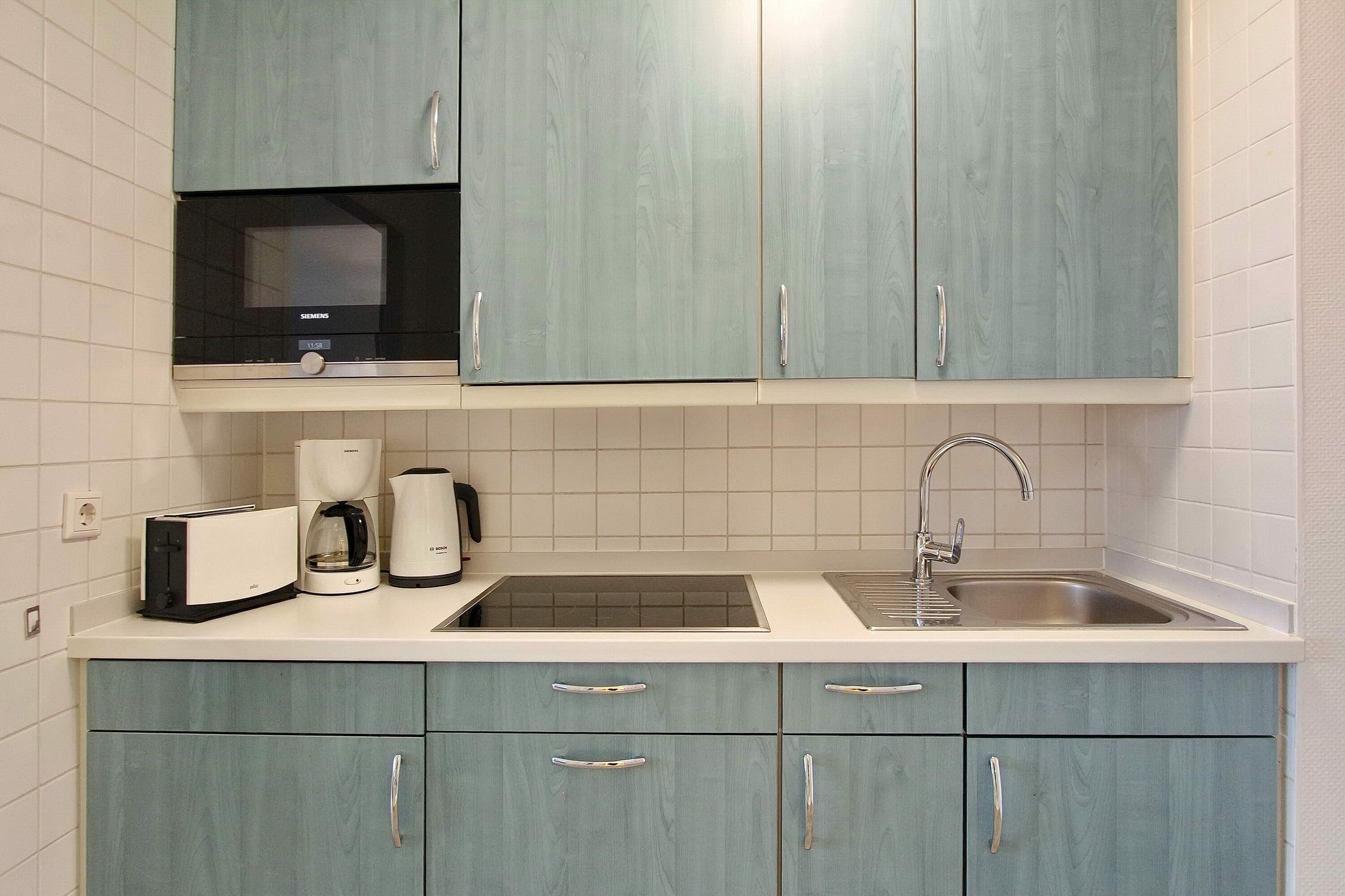 Hell und freundlich eingerichteter Wohn-/Schlafraum in der 5. Etage im Haus Metropol mit vorgelagertem, großen Ostbalkon und bei schönem Wetter einem herrlichen Blick über Westerland. Der neu gestaltete Wohnraum mit Designfussboden hat eine große Schrankwand mit Einzelschrankbetten und Komfortfederkernmatratzen, für einen besonders erholsamen Schlaf. Es gibt einen Essplatz am Fenster mit 2 Stühlen, sowie eine Couch und einen Fernsehsessel mit Fußhocker für gemütliche Fernseh- oder Leseabende. Im Badezimmer gibt es eine Dusche, einen Fön und ausreichend Ablage- und Schrankfläche für ihre persönlichen Dinge. Die Einbauküche im Flur verfüg über einen modernen Induktionsherd mit 4 Kochplatten sowie eine Mikrowelle mit Grillfunktion. Zur technischen Ausstattung dieser Wohnung gehört ein Flachbildfernseher, ein Bluetooth Radio mit CD Player. Der freie WLAN Hot Spot (WEG Haus Metropol - Passwortfrei - ohne Gewähr) steht ihnen kostenfrei zur Verfügung. Wohnungsgröße: ca. 30 m².