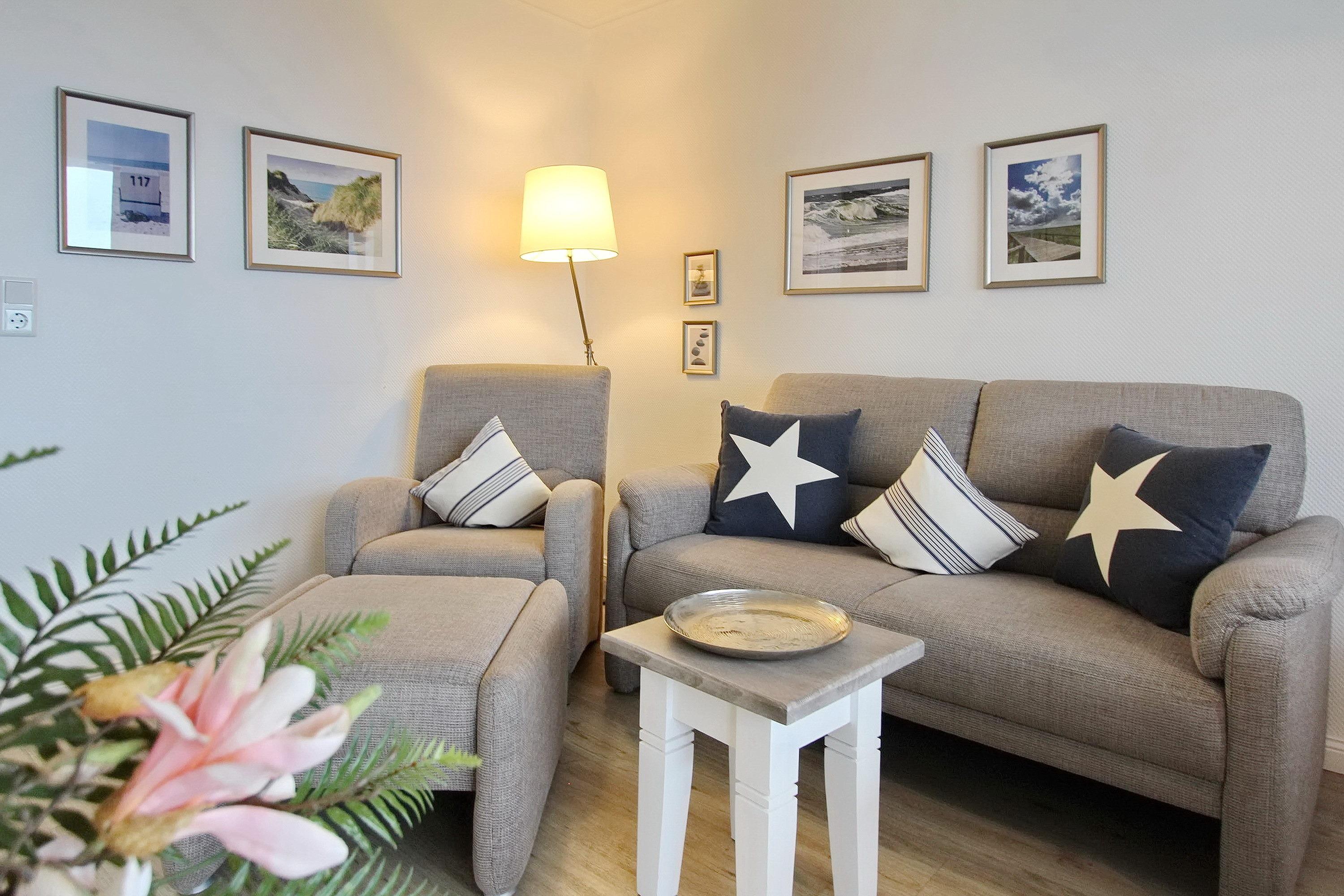 Hell eingerichtete Ferienwohnung mit Balkon und Meerblick in Westerland, Sylt, ideal für erholsame Tage zu zweit.