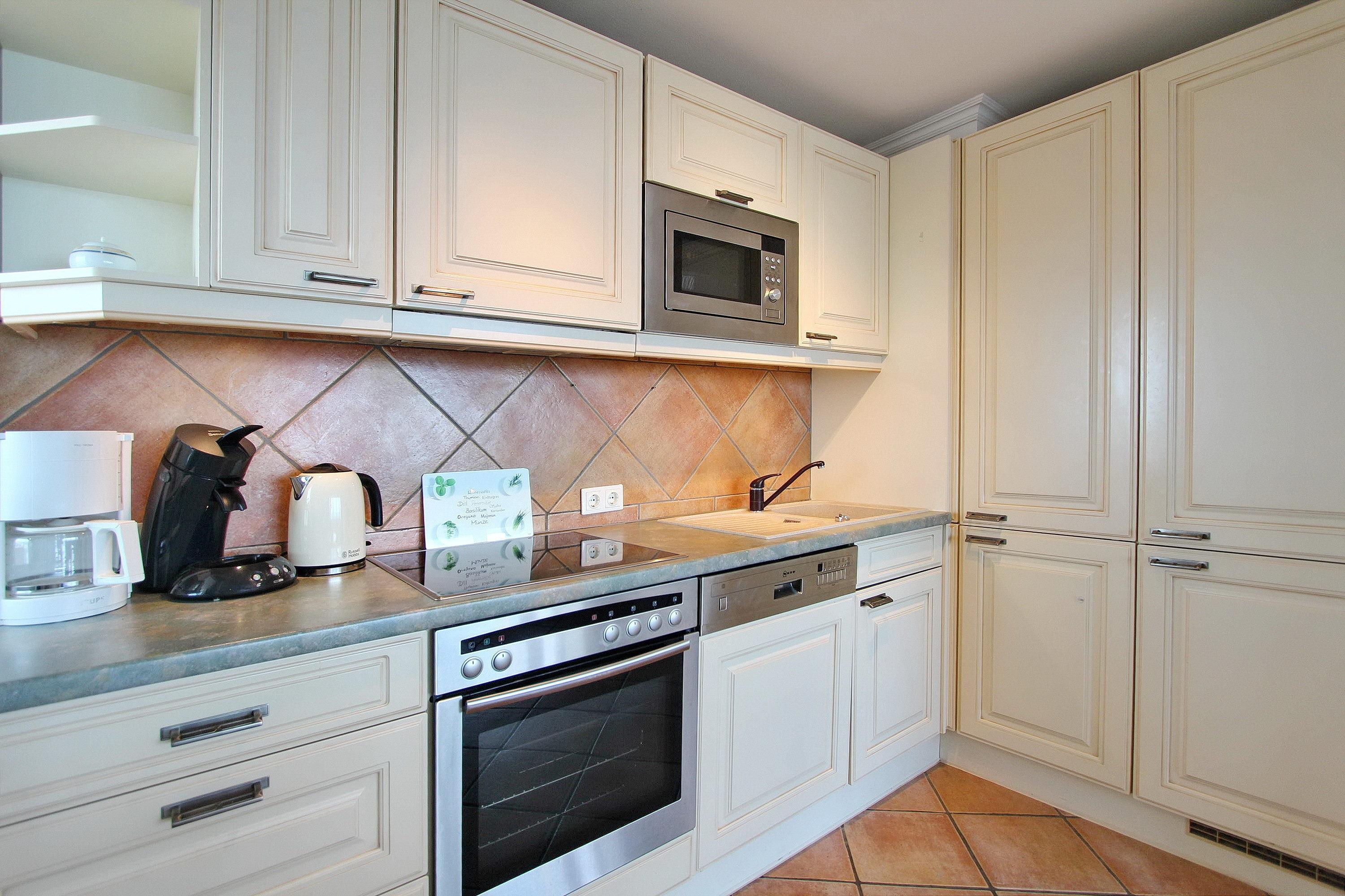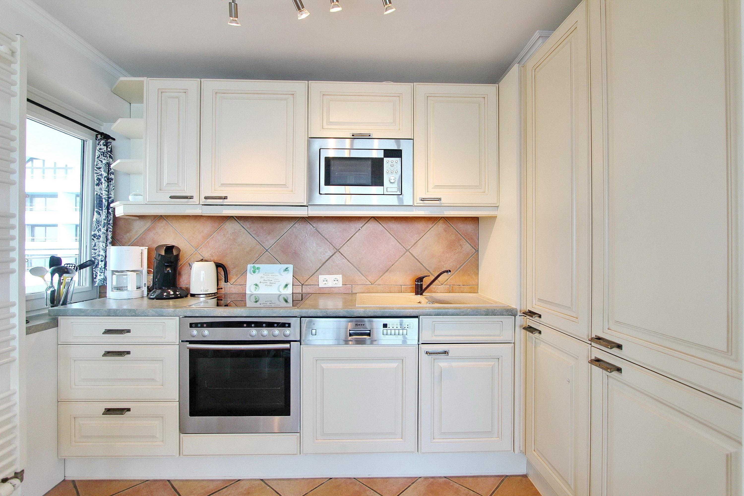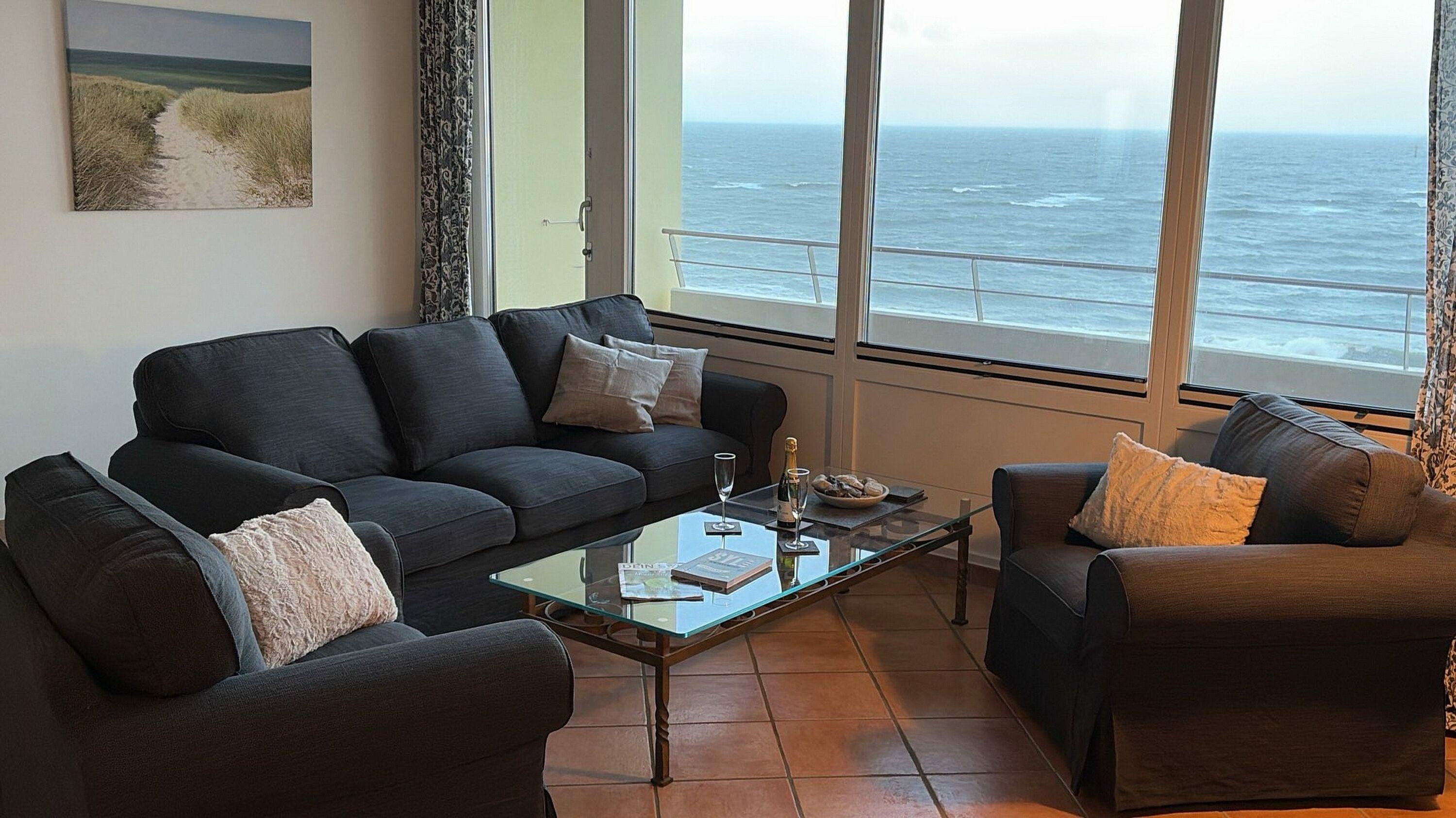 Wunderschöne 3 Zimmer Nichtraucher-Wohnung in der 6. Etage im Haus Metropol mit vollem Meeres-und Inselblick. Insgesamt hat die Wohnung 3 Balkone. Der lichtdurchflutete Wohnraum (mit einem West- und einem Nordbalkon) verfügt über eine große Couchgarnitur, einen großen Flachbildfernseher, einen runden Essplatz mit 4 Stühlen und eine offene Küchenzeile mit Geschirrspüler, Backofen, zusätzliche Senseo Pad Maschine und Mikrowelle. Das Schlafzimmer mit Doppelbett verfügt über einen Westbalkon, hat auch einen Fernseher und einen direkten Zugang zum Badezimmer. Das zweite Schlafzimmer mit Doppelbett hat einen tollen Blick über das Wasser Richtung Norden der Insel. Optionale spezielle Kopfkissen, Bettdecken und der Fliesenboden machen diese Wohnung allergikerfreundlich. Das Wohlfühlbad hat einen Waschtisch, einen mobilen Haltegriff, Duschhocker und eine ebenerdige Dusche, die auch für Gäste mit Handicap geeignet ist. Der Flur ist mit ausreichend Garderobenschränken ausgestattet. Die ganze Wohnung ist mit viel Liebe zum Detail eingerichtet und ist mit Sicherheit ein Platz an dem man einen erholsamen Urlaub verbringen kann.Ein freies WLAN Netzwerk (WEG Haus Metropol - Passwortfrei - ohne Gewähr) steht ihnen kostenfrei zur Verfügung. Wohnungsgröße : ca. 90 m².