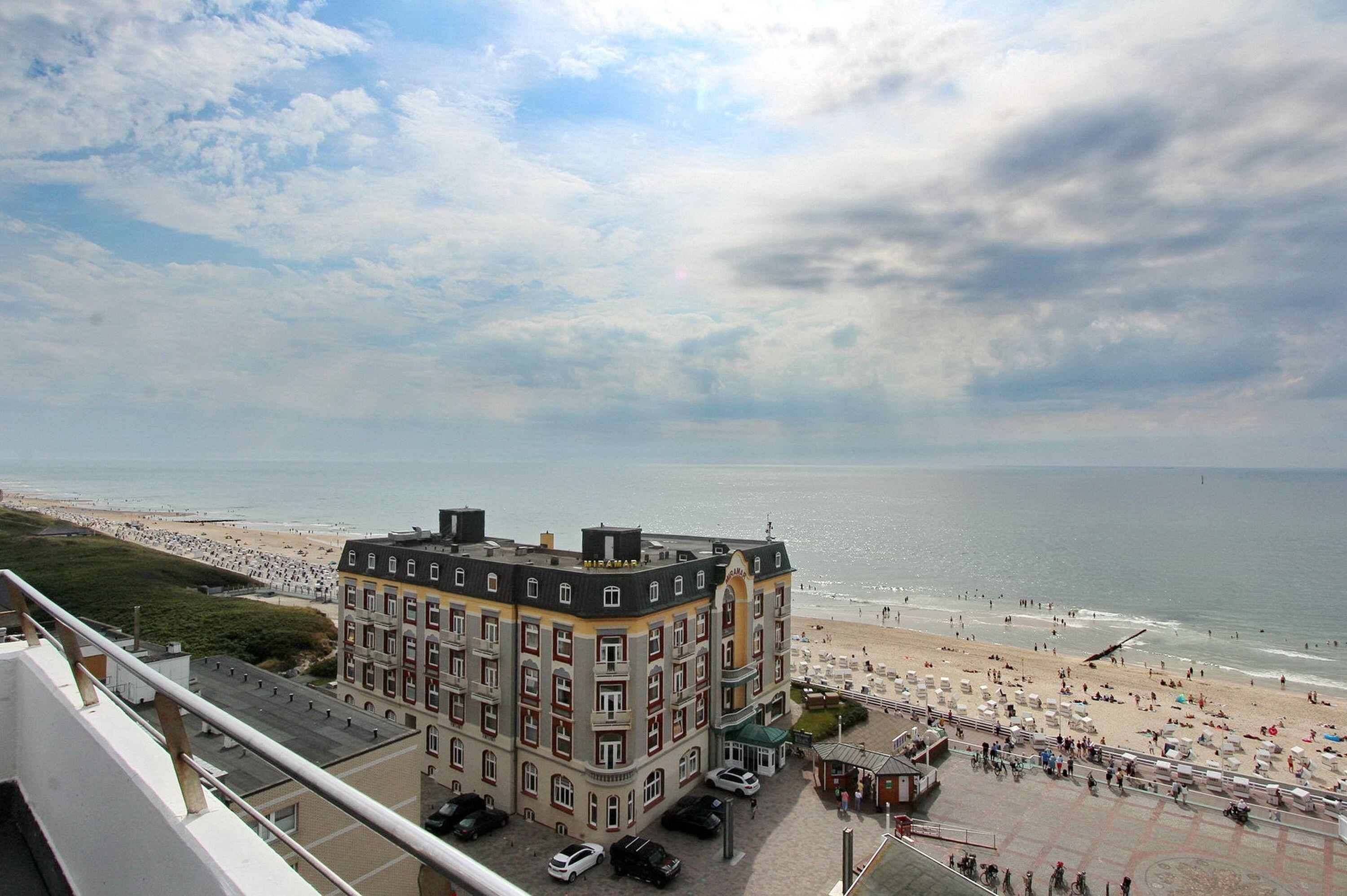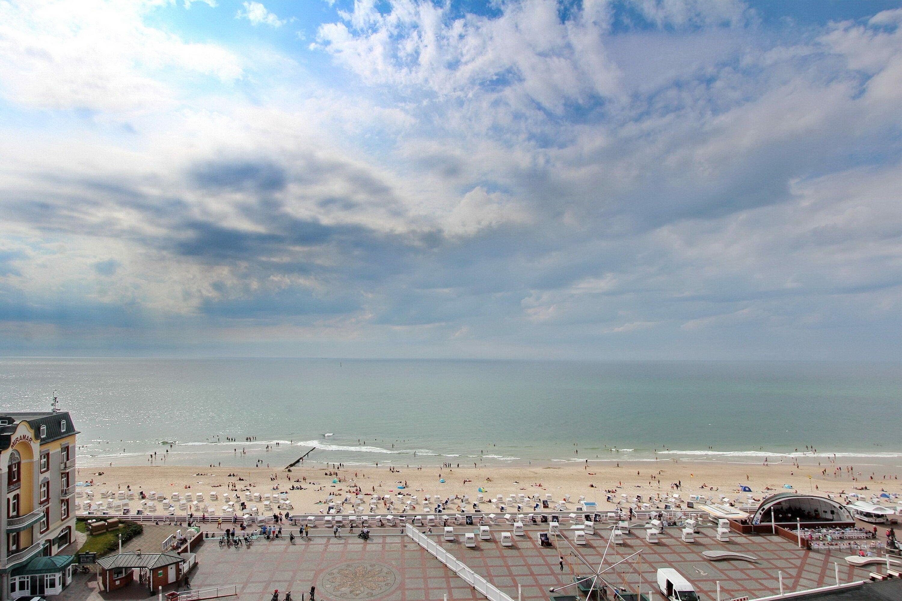 Diese einmalig schöne Penthousewohnung in der 8. Etage des Haus am Meer, hat einen traumhaften Blick über den Strand, die Nordsee und die Insel. Das Wohnzimmer mit Süd-/Westdachterrasse verfügt über eine bequeme Sitzgruppe, einen großen Flachbildfernseher.[nbsp] Die integrierte offene Küche, mit Ceranfeld, Geschirrspüler, Backofen und zusätzlicher Nespressomaschine, erfüllt alle Ansprüche und biete auch noch einen Essplatz für 4 Personen direkt am Fenster. Vom Eierkocher bis zur Küchenmaschine mit Mixer ... an alles wurde gedacht, damit Sie sich bequem selbst verpflegen können. Dem Frühstück mit Meerblick steht also nichts im Wege. In der ganzen Wohnung wurde auf Teppichboden verzichtet und hochwertiger Designfussboden verlegt. Das Schlafzimmer hat ein Doppelbett und einen direkten Zugang zum Tageslichtbadezimmer mit Dusche/WC. Das zweite Schlafzimmer hat einen zusätzlichen Flachbildfernseher und ebenfalls ein feststehendes Doppelbett. Ein separates Gäste WC ist vorhanden. Zur technischen Ausstattung der Wohnung gehört: eine Waschmaschine, zwei Flachbildfernseher, eine Bluetoothanlage mit CD Spieler sowie eine Klimaanlage. Kostenfreier Zugang zum WLAN Hot Spot (WEG Haus am Meer - Passwortfrei - ohne Gewähr). Diese Nichtraucherwohnung ist bis zur 7. Etage mit dem Fahrstuhl und dann über eine Treppe erreichbar. Wohnungsgröße: ca. 80 m².