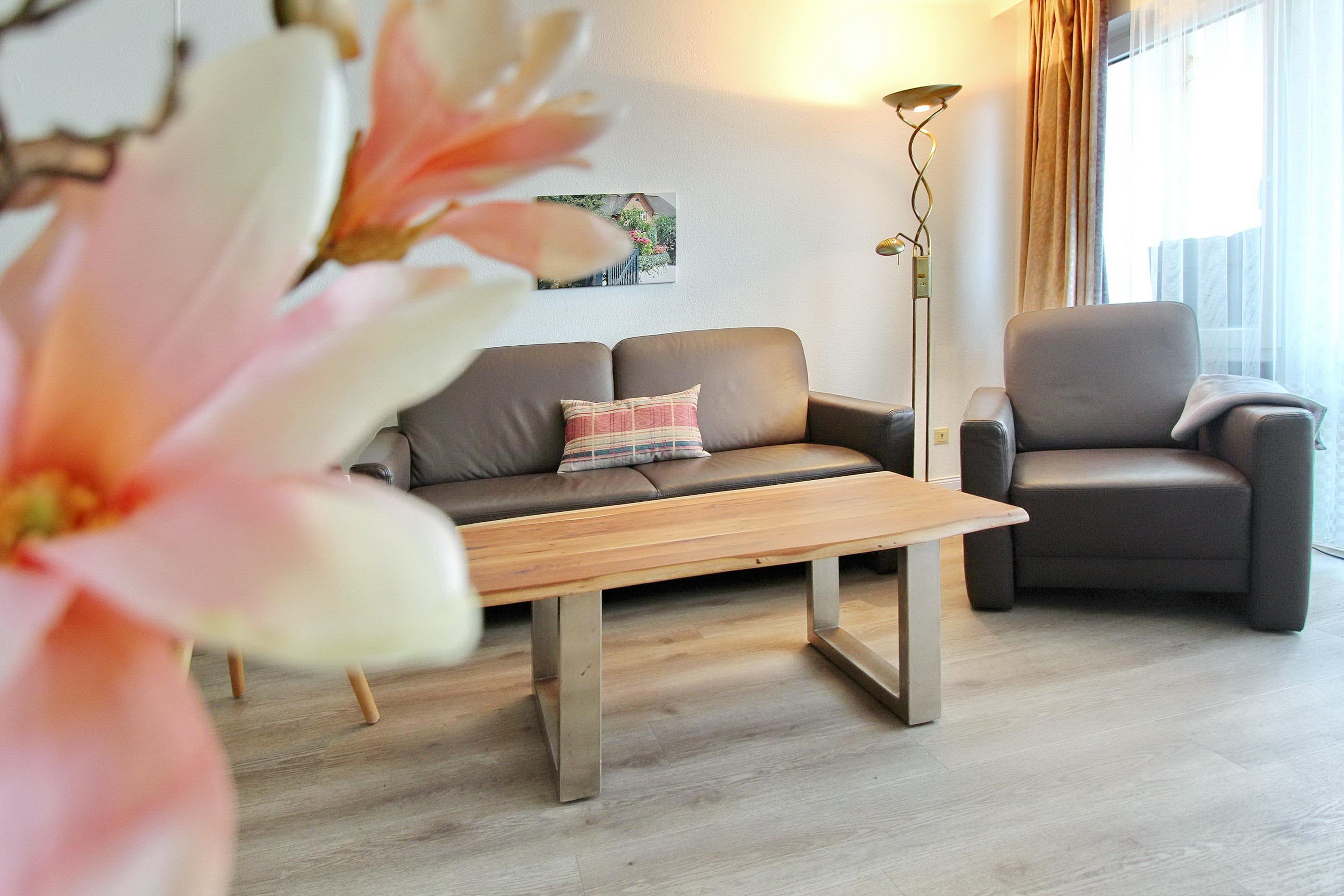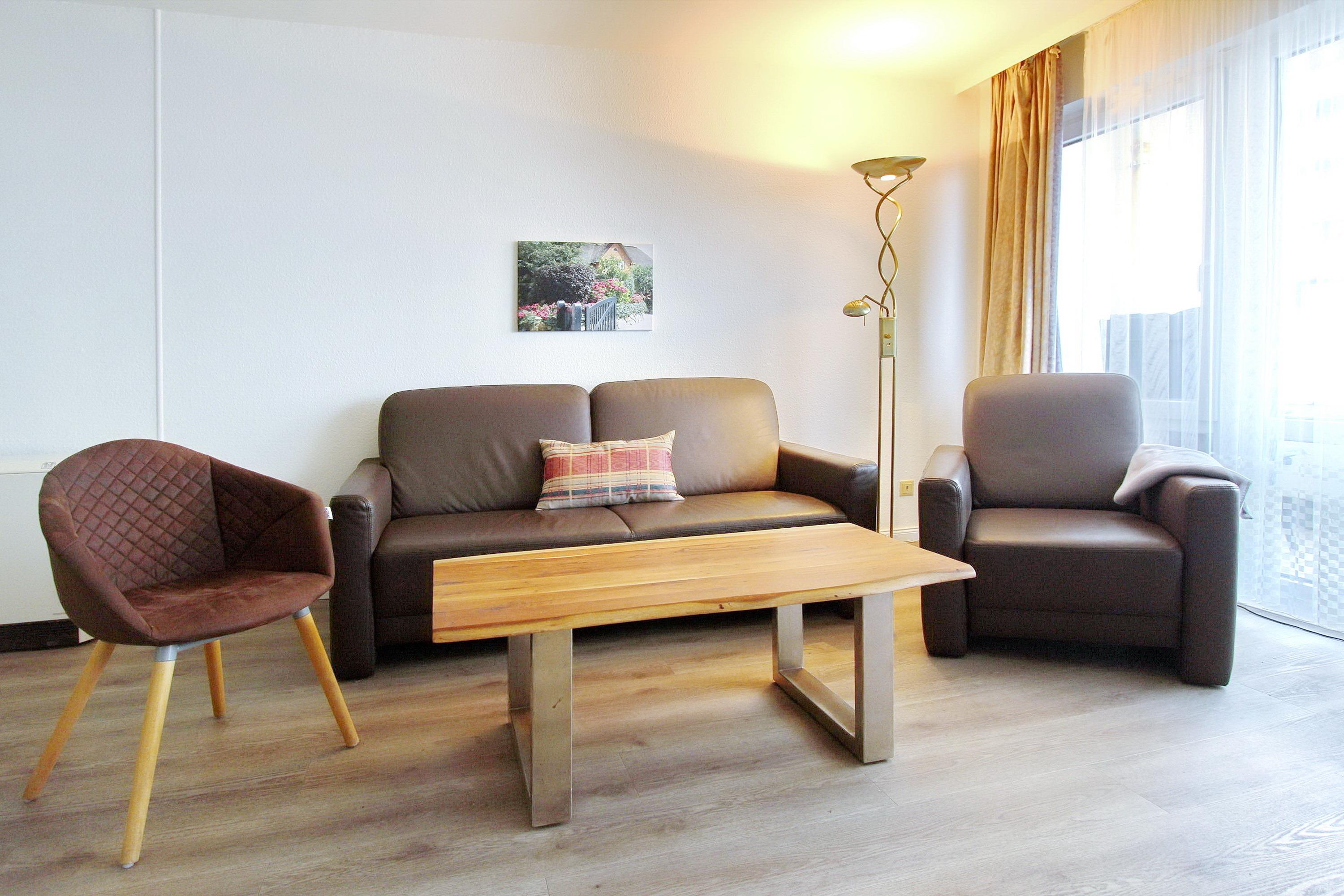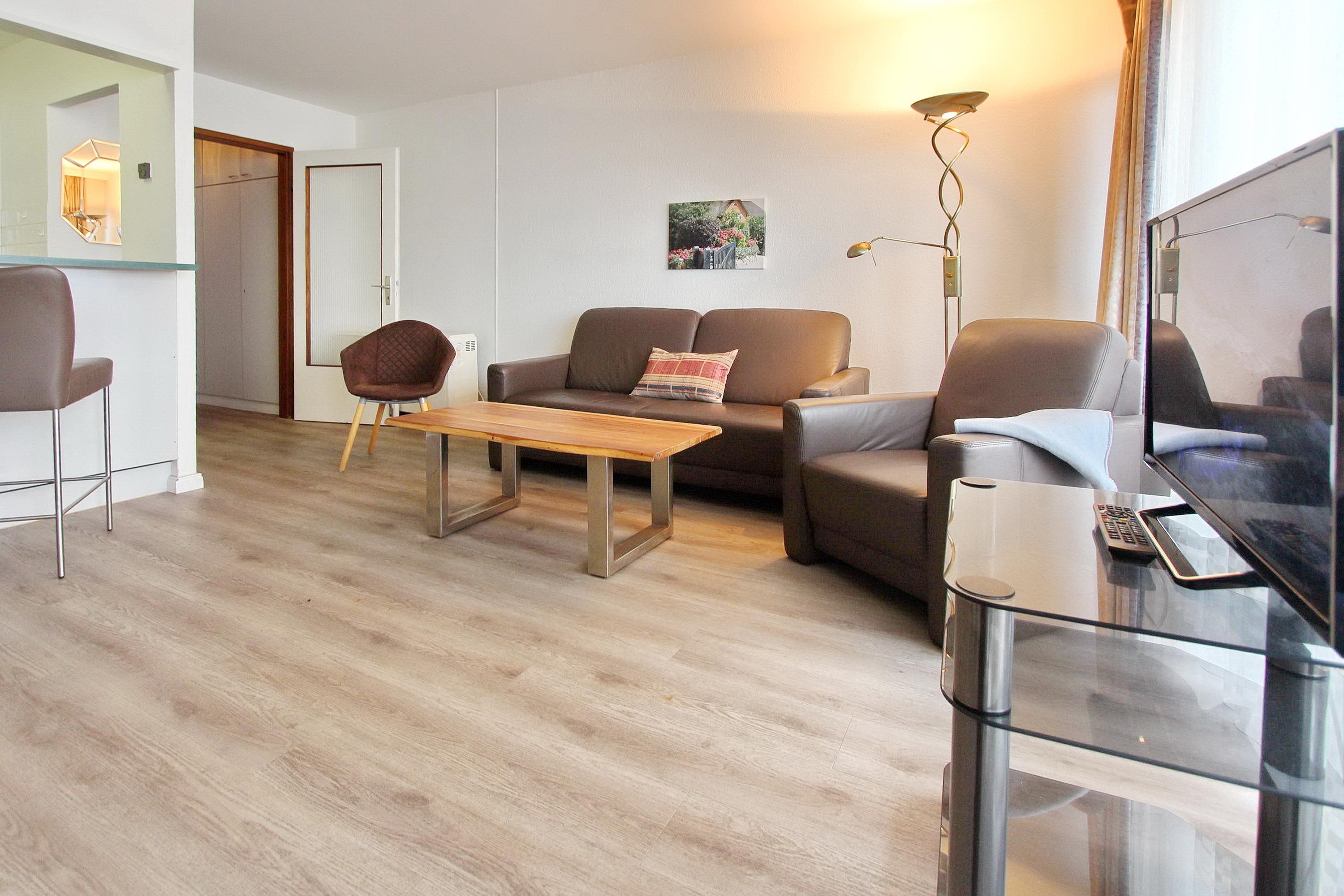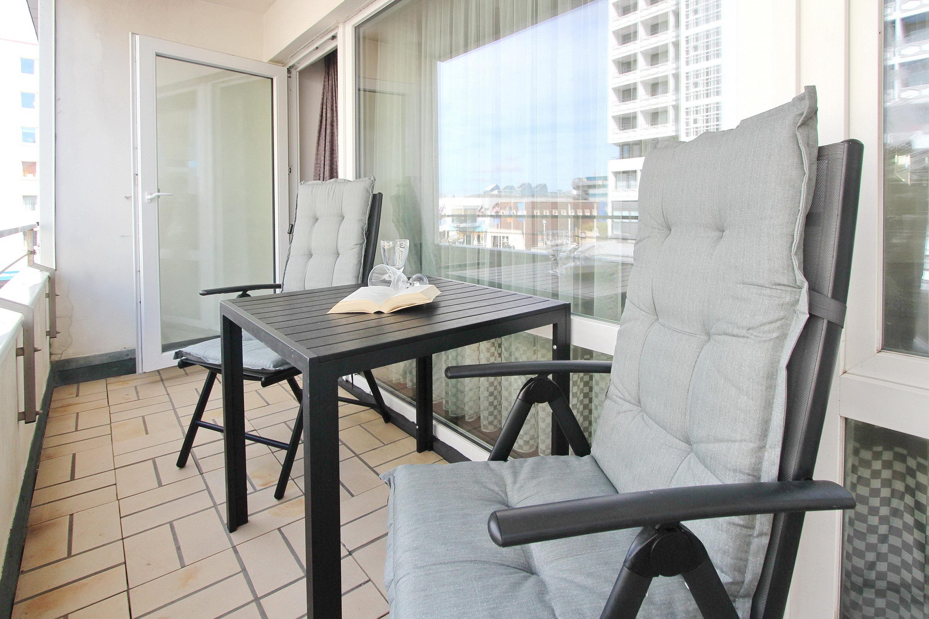 Das 1 Zimmer Appartement in der 2. Etage im Haus Westerhörn liegt nur wenige Schritte vom Strand und Meer entfernt. Der helle, mit bodentiefen Fenstern, ausgestattete Wohn-/Schlafraum mit vorgelagertem Westbalkon (Balkonmöbel sind vorhanden) verfügt über Einzelschrankbetten und eine Ledersitzgruppe und 2 Stühle. Die zum Raum offene Küchenbar (mit Backofen) verfügt über einen Esstresen mit Lederbarhockern an denen Sie Ihre Mahlzeiten zu sich nehmen. Designfußboden in Holzdielenoptik wurde verlegt. Das Badezimmer hat eine Badewanne mit Duschvorhang und ein Fenster zur direkten Belüftung. Zur technischen Ausstattung dieser Wohnung gehört: ein moderner Flachbildfernseher von Panasonic und ein Radio. Wohnungsgröße: ca. 35 m².