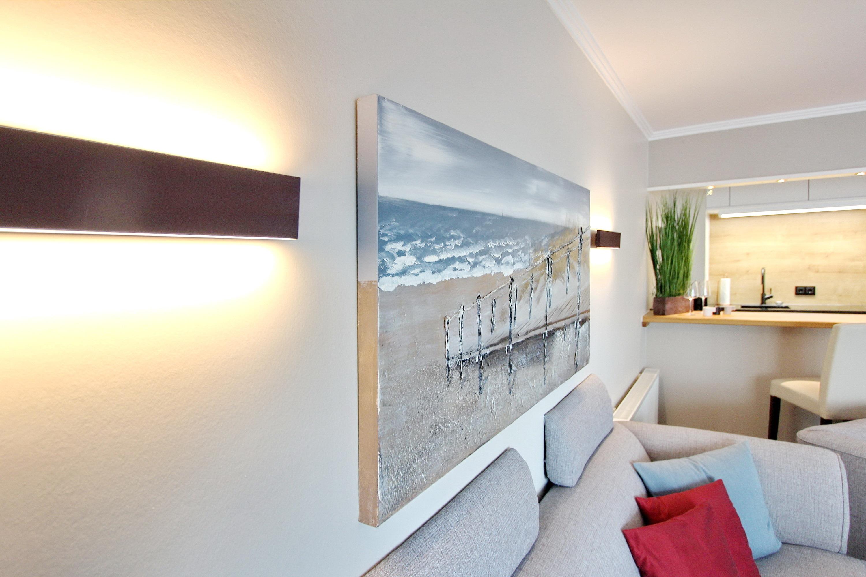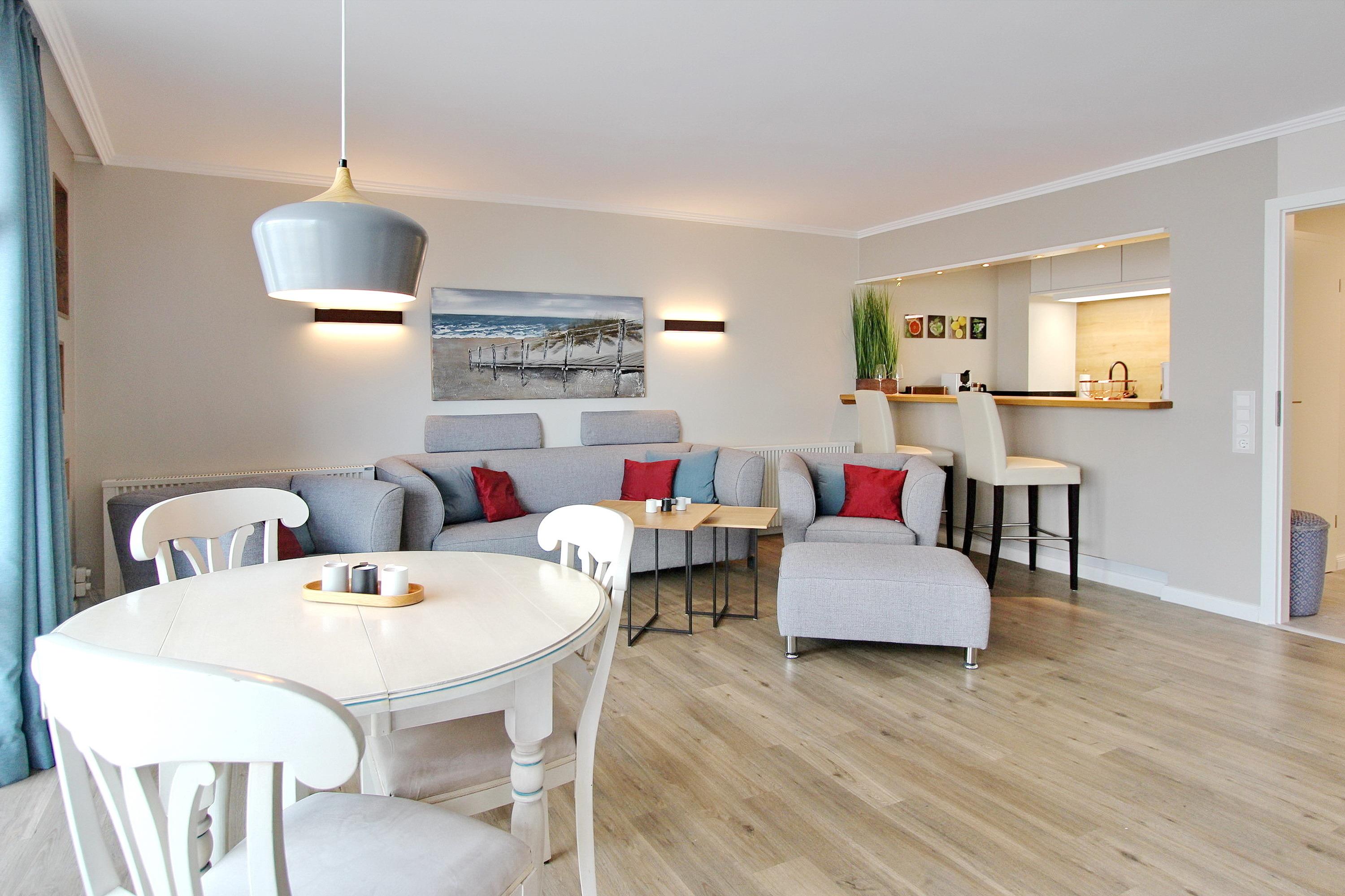 Sehr gemütlich eingerichtete 2-Zimmer-Wohnung im Herzen der Inselmetropole Westerland mit Blick auf die Nordsee - direkt an der Fußgängerzone Strandstraße gelegen und in unmittelbarer Nähe des Strandübergangs Strandstraße zur Promenade. Das Appartement im Haus Westerhörn befindet sich in der 3. Etage mit Balkon zur Nordseite - von hier genießen Sie den Blick die Strandstraße hoch auf die Nordsee. Der Wohnraum ist mit einer großen Couchgarnitur mit 2 Sesseln und einem Fußhocker und einem Essplatz mit 3 Stühlen am Fenster und einem Einzelschrankbett ausgestattet. Die Küchenzeile ist im Wohnraum integriert und durch einem offenen Tresen etwas abgeteilt. - hier finden Sie ein Cerankochfeld, eine Mikrowelle und ein Geschirrspüler. Das, vom Wohnraum abgehende, Schlafzimmer verfügt über ein gemütliches Boxspringbett (1,6 m x 2,00 m). Duschbad/WC mit Halbrunddusche. Zur technischen Ausstattung gehört ein Smart-TV und ein Radio. Den kostenfreien WLAN Zugang des Eigentümers können Sie nutzen (die Zugangsdaten finden Sie im App.). Wohnungsgröße 54 m². Nichtraucherwohnung.