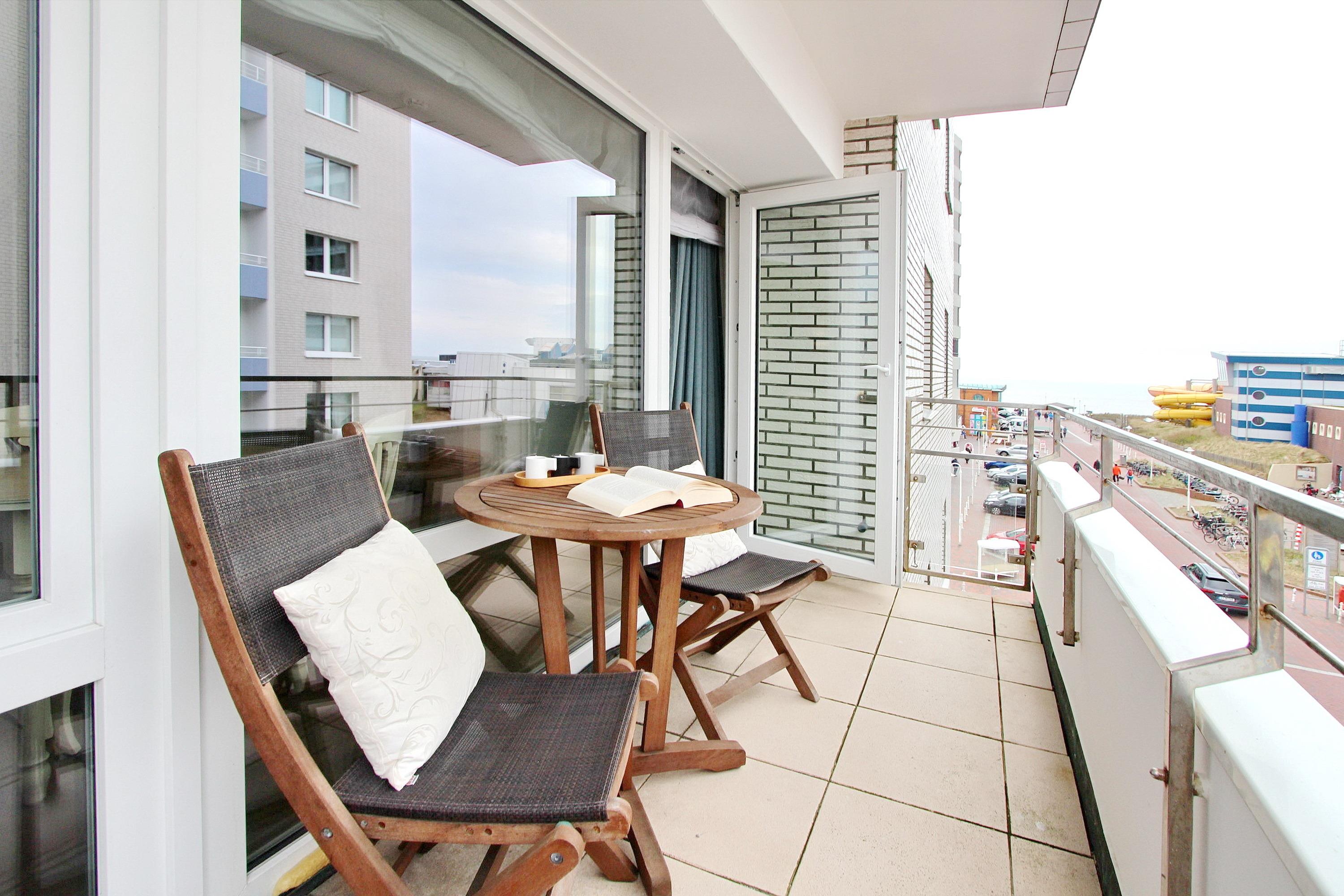 Gemütliche 2-Zimmer-Ferienwohnung in Westerland mit Nordseeblick und Balkon, direkt an der Strandstraße und nahe der Promenade.