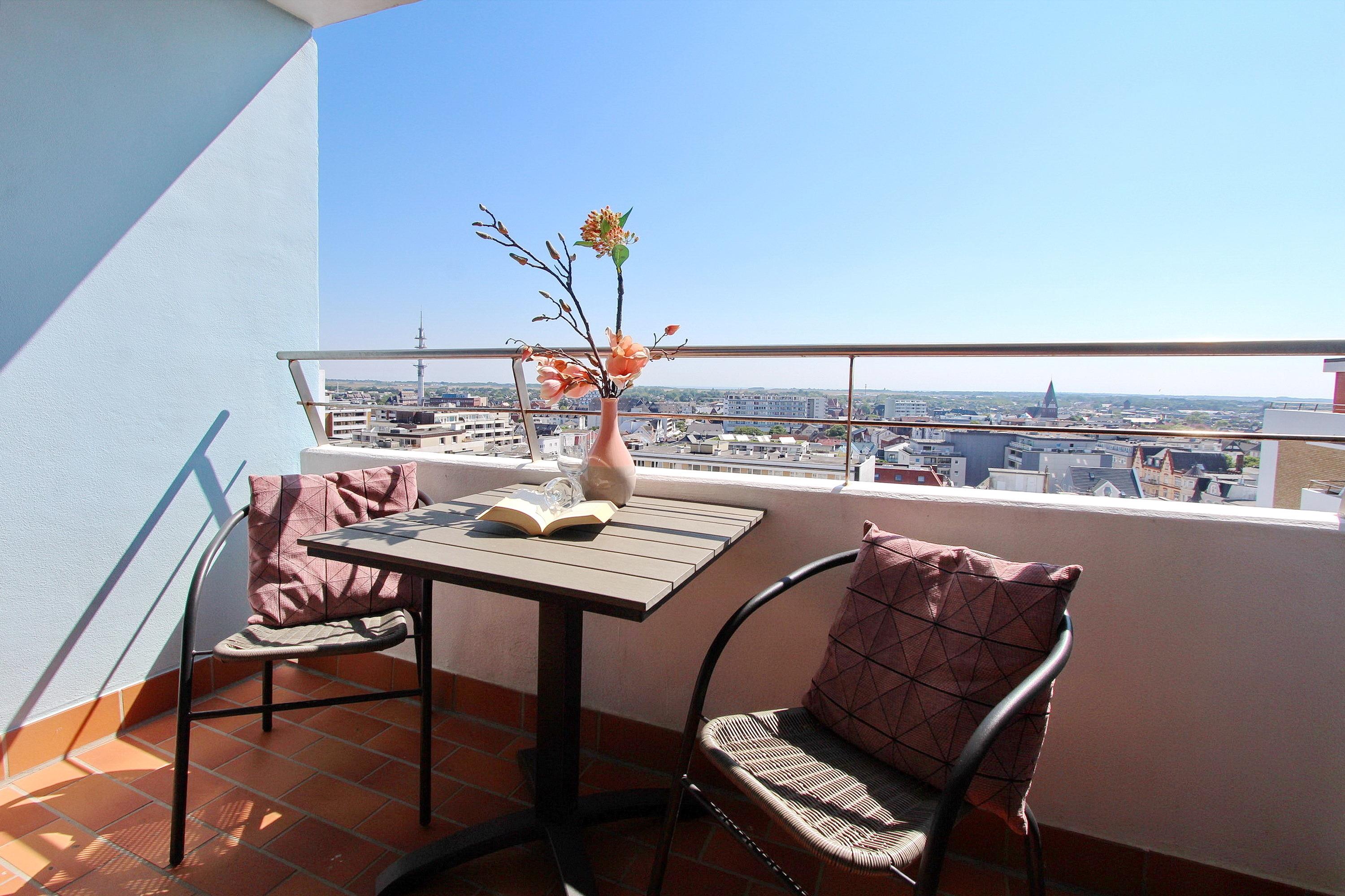 Kleine Ferienwohnung in Westerland mit Balkon und Blick aufs Wattenmeer, ideal für 2 Personen.