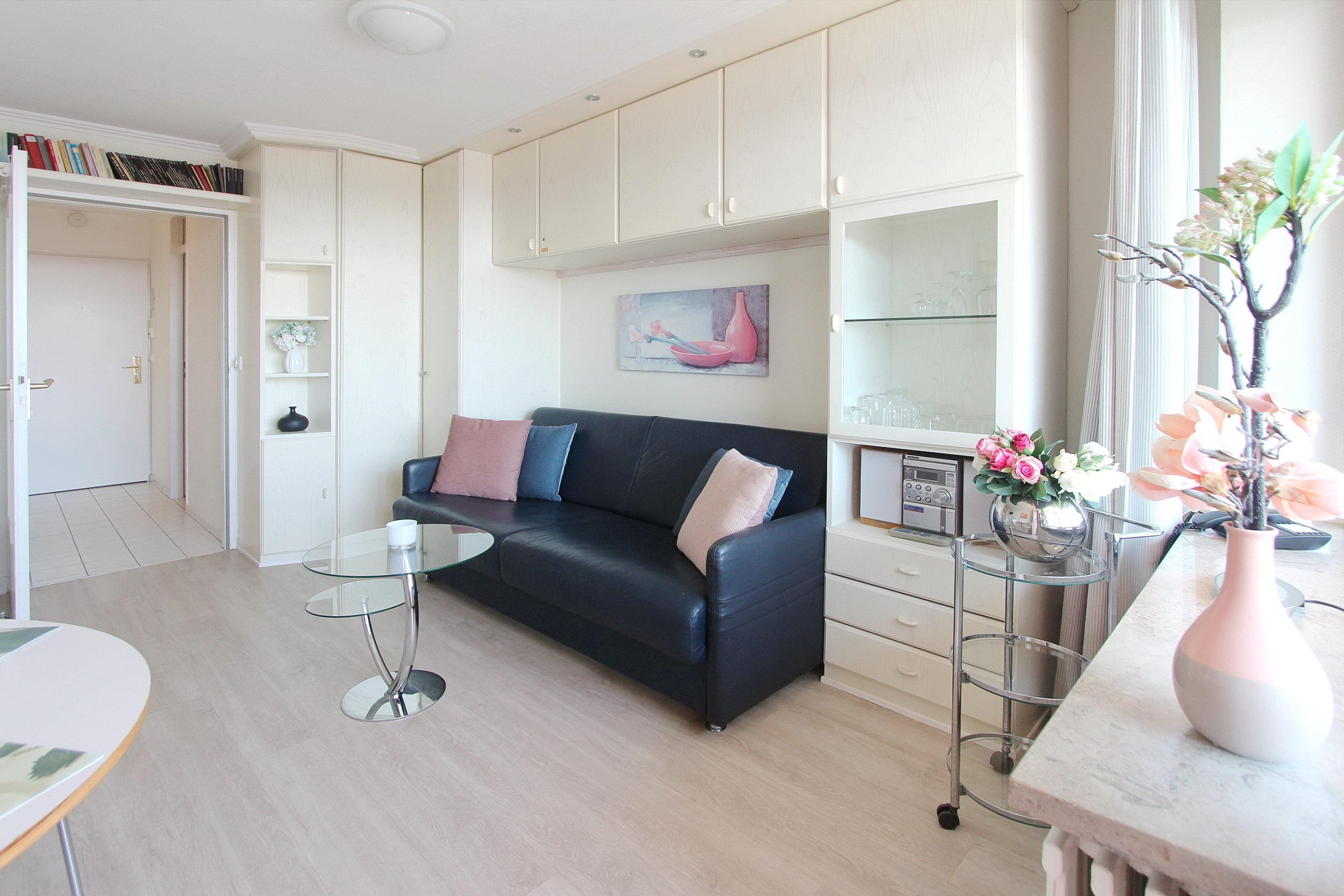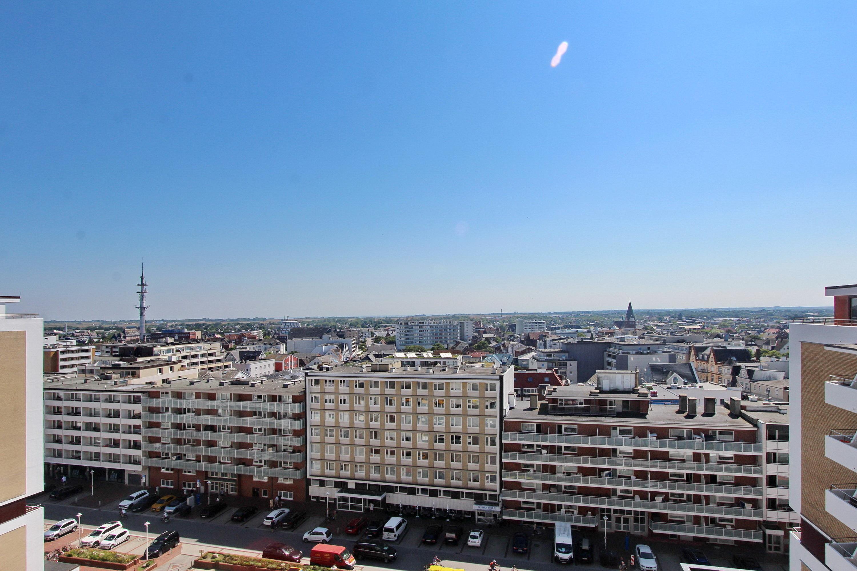 Diese kleine Einzimmerwohnung in der 8. Etage im Huas Metropol hat einen herrlichen Weitblick über die Stadt, die Insel und bei klarem Wetter bis zum nordfriesischen Wattenmeer. Der Wohn-/Schlafraum mit vorgelagertem Ostbalkon verfügt über eine bequeme Schlafcouch (mit 1 Matratze) und einen Essplatz mit 2 Stühlen am Fenster. Durch den Designfussboden ist die Wohnung allergikerfreundlich und auch Synthetikbetten und Kissen sind vorhanden. Im Badezimmer gibt es eine Dusche und eine kleine Einbauküche mit Backofen befindet sich im Flur. Zur technischen Ausstattung gehört ein Flachbildfernseher und ein Radio mit CD- Player. Ein freies WLAN Netzwerk (WEG Haus Metropol - Passwortfrei - ohne Gewähr) steht ihnen kostenfrei zur Verfügung. Wohnungsgröße: ca. 23 m².