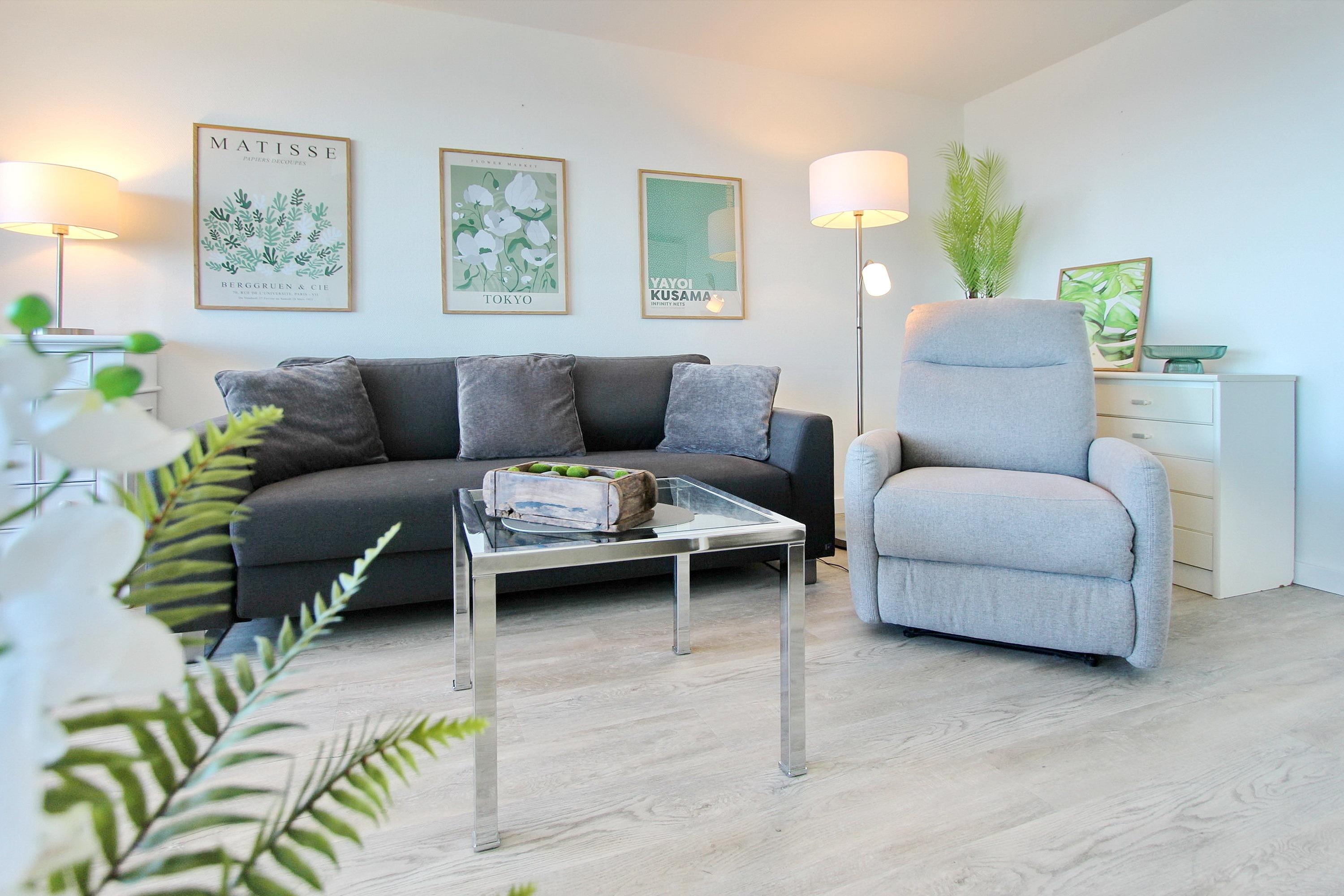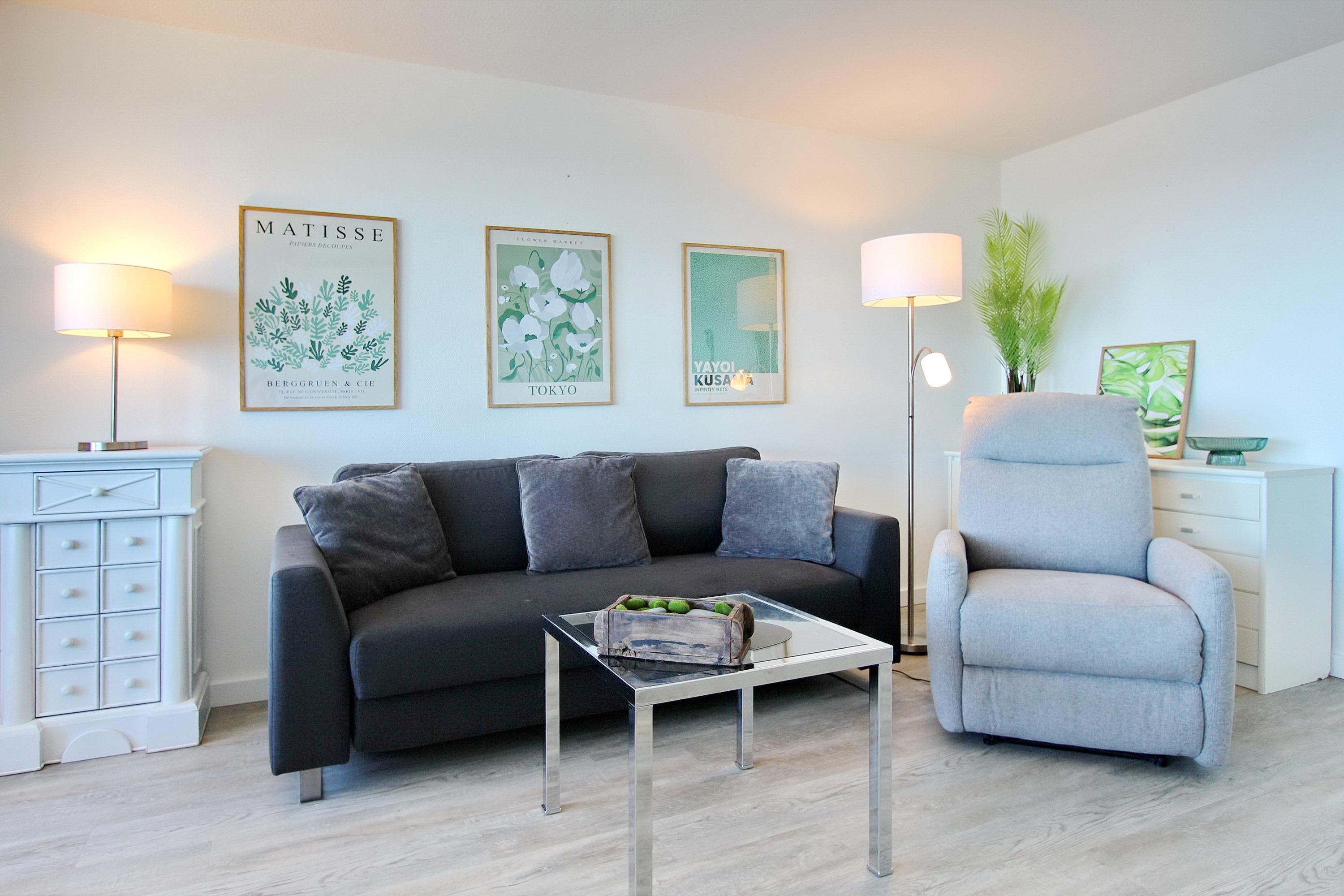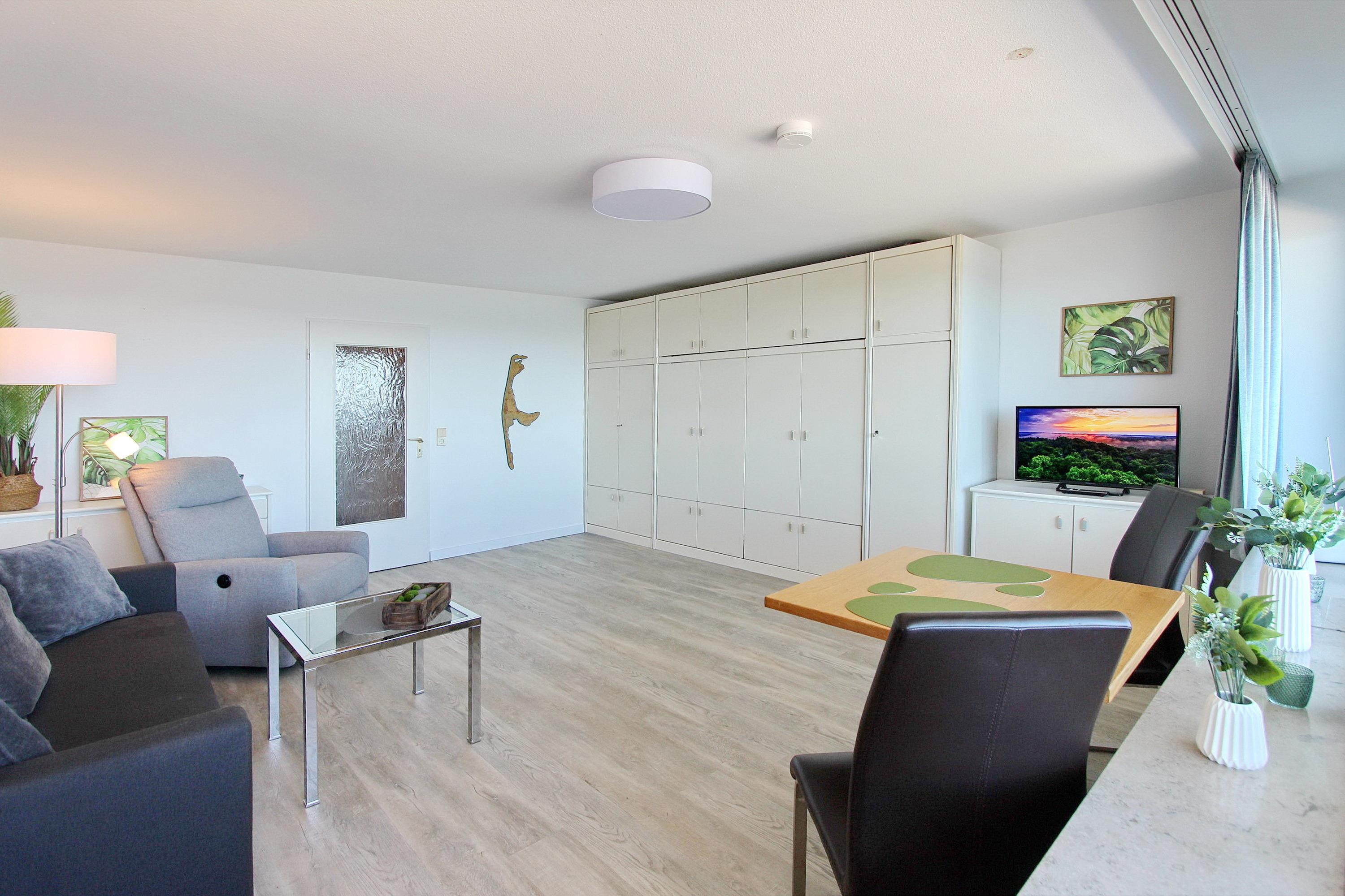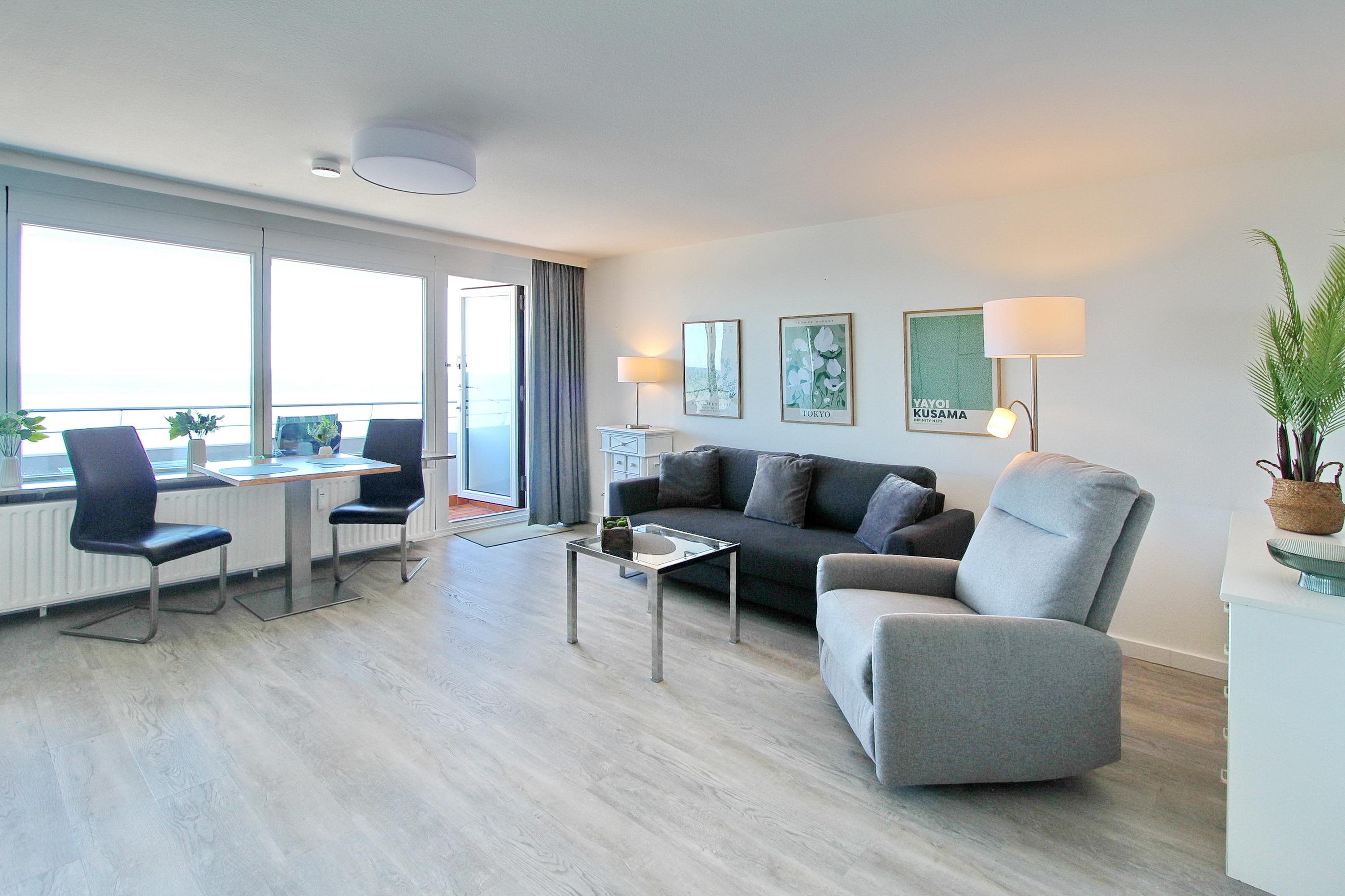 Genießen Sie eine moderne Ferienwohnung mit Panoramablick auf Nordsee und Strand in Westerland, Sylt.