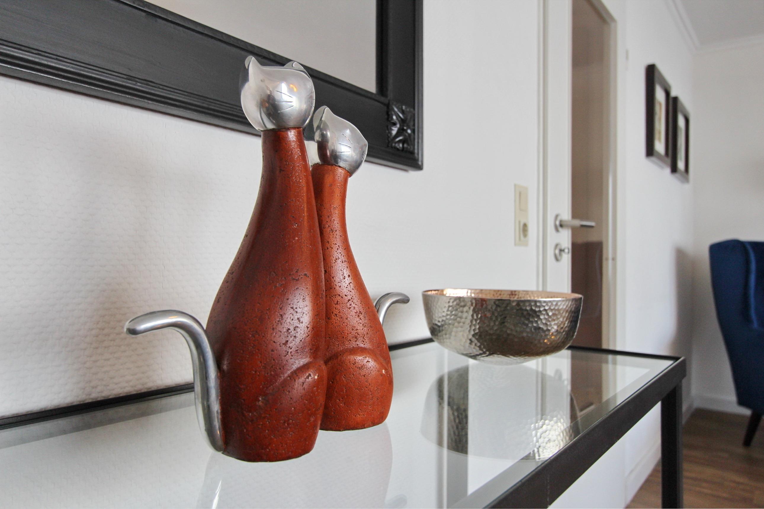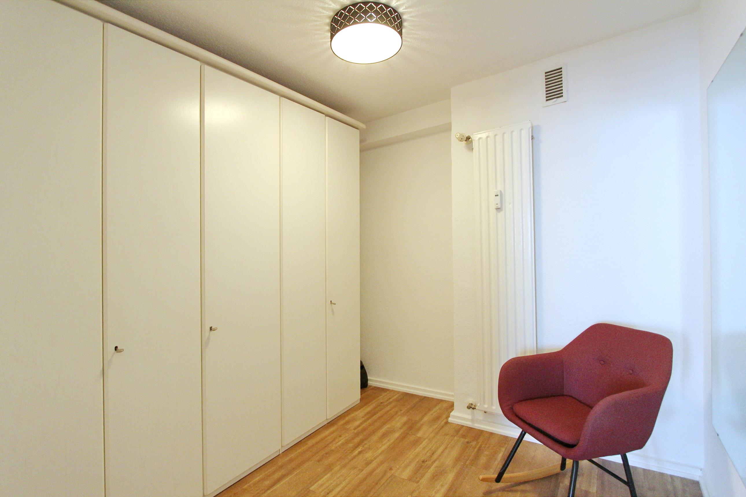 Große Zweizimmerwohnung in der 12. Etage im Haus Metropol mit herrlichem Blick über den Strand und das Meer. Das Wohnzimmer und das Schlafzimmer haben je einen vorgelagerten Westbalkon mit Loungemöbeln. Ausgestattet ist die Wohnung mit einer Couch mit Schlaffunktion, 1 gemütlichen Ohrensessel mit Hocker, einem Essplatz mit 4 Stühlen und einer Schrankwand mit viel Stauraum. Designboden in Holzoptik verleiht dem Raum Wärme und Gemütlichkeit. Im Schlafzimmer gibt es ein feststehendes Doppelbett mit 2 Matratzen und ein TV. Im separaten Ankleidezimmer gibt es einen großen Kleiderschrank, Sessel und Spiegel. Um sich selbst zu verpflegen verfügt diese Wohnung über eine kleine Küche mit Geschirrspüler, Backofen, Ceranfeld und Mikrowelle. Stilvoll decken Sie den Tisch mit Geschirr von Thomas Trend. Das Badezimmer hat eine Dusche, die einen niedrigen Einstieg hat, einen Fön und einen Handtuchtrockner. Zur technischen Ausstattung gehört: ein Flachbildfernseher von Panasonic und ein Radio. Ein freies WLAN Netzwerk (WEG Haus Metropol - Passwortfrei - ohne Gewähr) steht ihnen kostenfrei zur Verfügung. Wohnungsgröße: ca. 67 m².