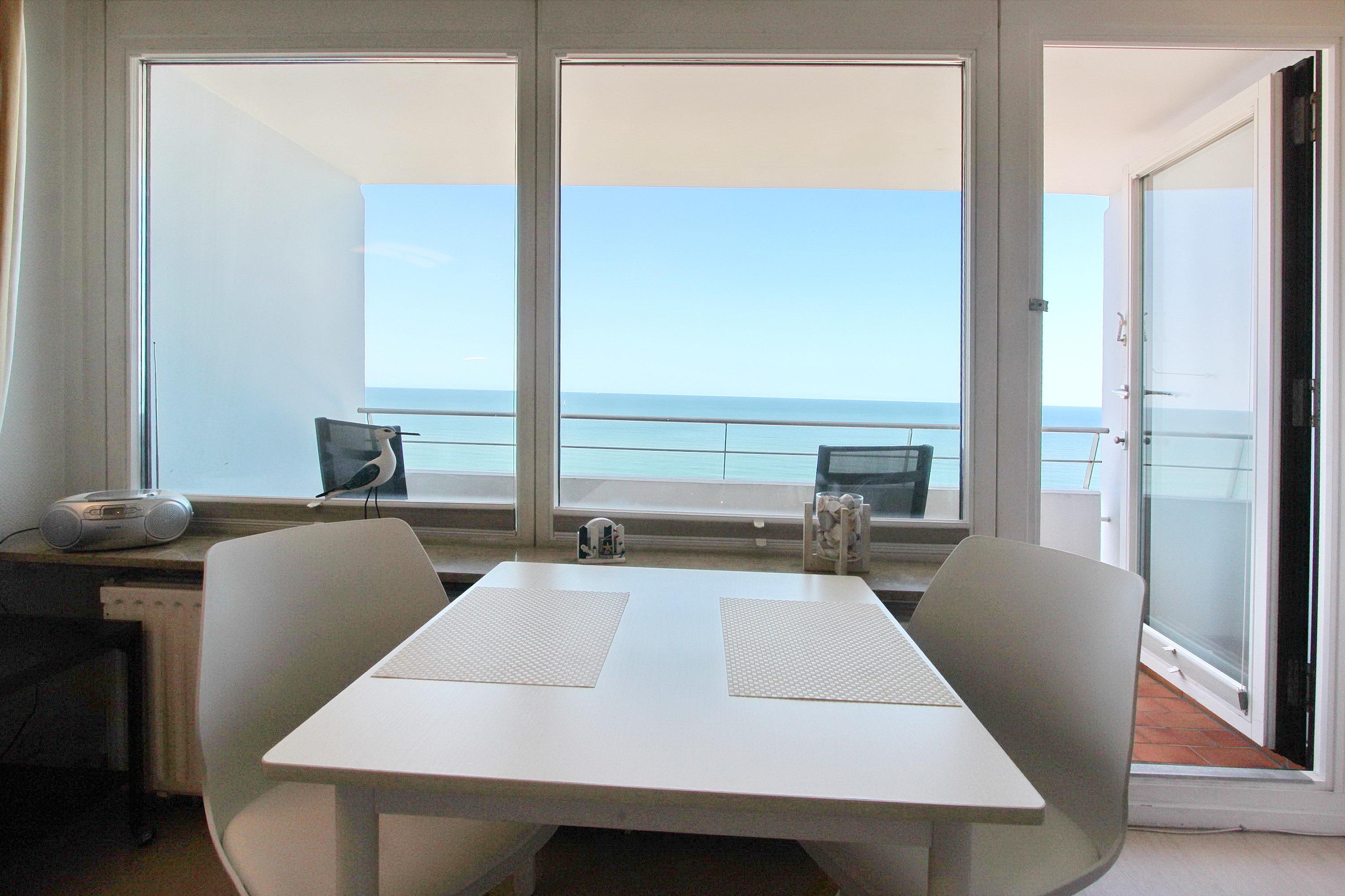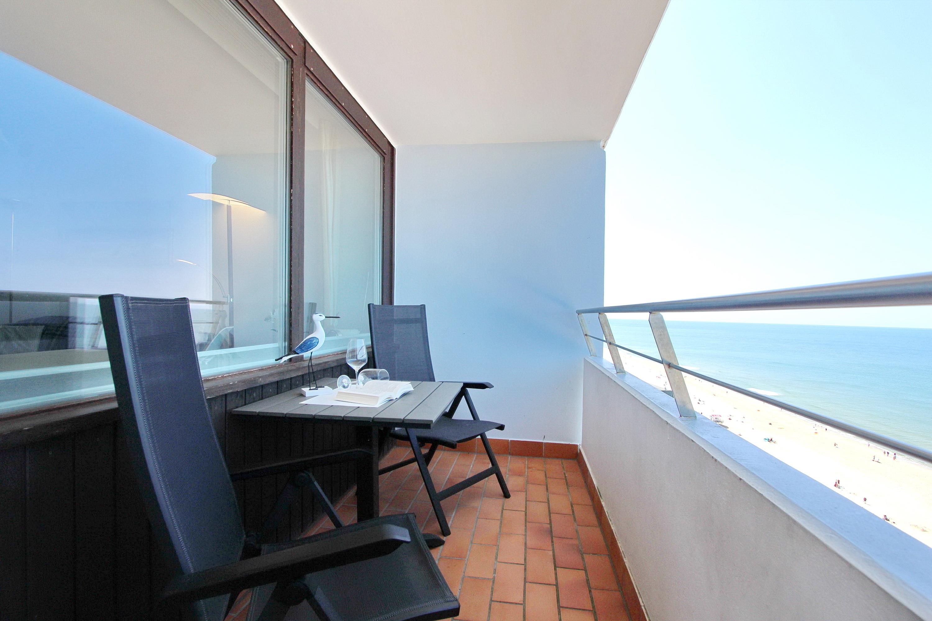 Meeresrauschen inklusive! In dieser Einzimmerwohnung in der 12. Etage im Haus Metropol haben sie einen herrlichen Blick auf den Strand und die Nordsee. Der kombinierte Wohn-/Schlafzimmer mit vorgelagertem Westbalkon verfügt über Einzelschrankbetten, einen Essplatz mit 2 Stühlen am Fenster und viele Schränke mit Stauraum. Eine Couch mit Fernsehsessel ist ebenfalls vorhanden. Eine Einbauküche mit Mikrowelle befindet sich im Flur. Das separate Badezimmer hat eine Dusche. Zur technischen Ausstattung dieser Wohnung gehört: ein Flachbildfernseher von Panasonic, sowie ein Radio mit CD Player. Ein freies WLAN Netzwerk (WEG Haus Metropol - Passwortfrei - ohne Gewähr) steht ihnen kostenfrei zur Verfügung. Größe dieser Nichtraucherwohnung: ca. 34 m².