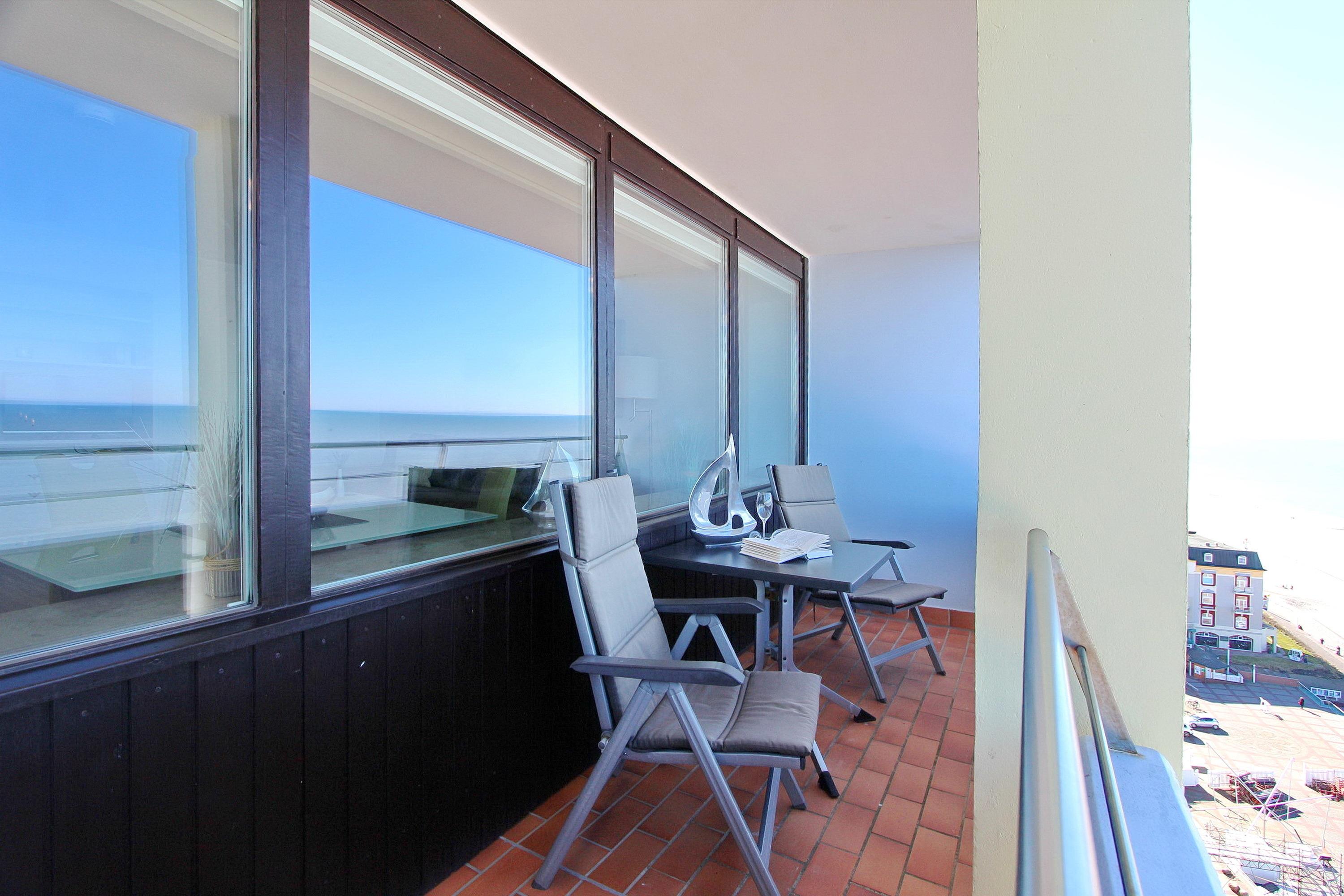 Moderne Ferienwohnung in Westerland mit Meerblick und Balkonmöbeln, ideal für einen erholsamen Urlaub auf Sylt.