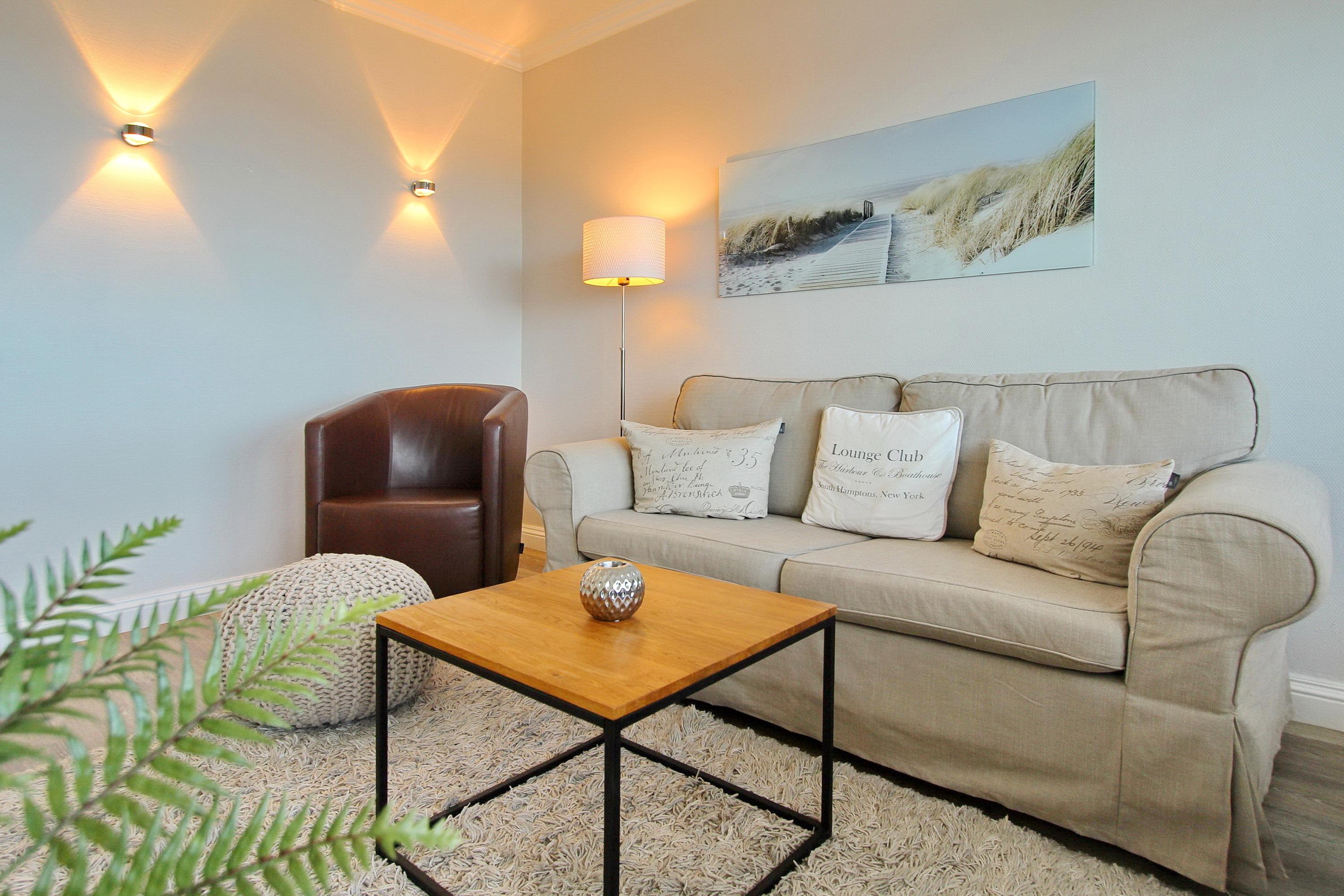 Moderne Ferienwohnung mit Balkon und herrlichem Blick auf die Nordsee in Westerland, Sylt.