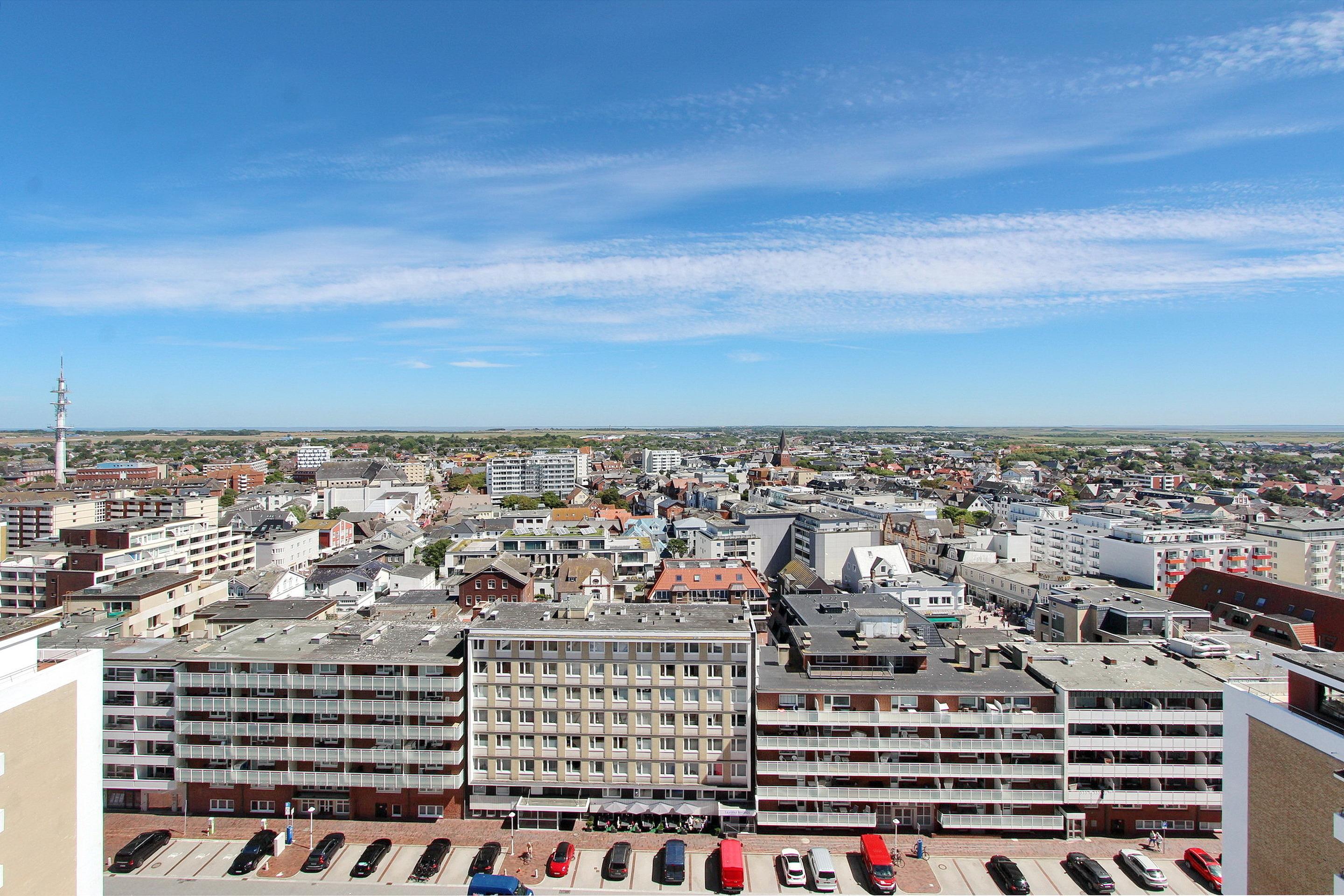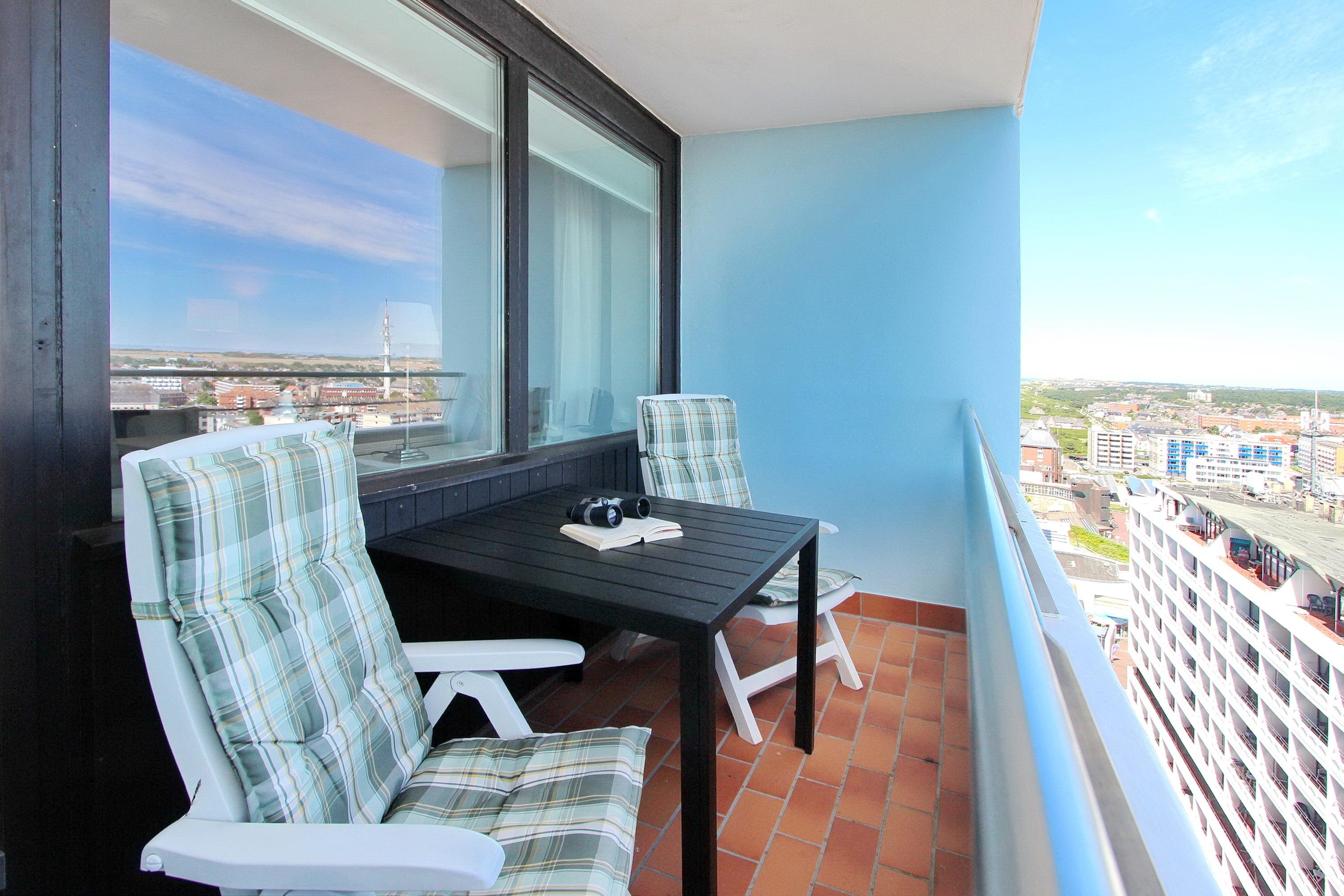 Herrlicher Weitblick über Insel und Stadt, bei klarem Wetter auf das nordfriesische Wattenmeer bis zum Festland aus der 13. Etage im Haus Metropol. Hell, freundlich und modern eingerichteter Wohn-/Schlafraum mit vorgelagertem Ostbalkon. Neben einem Doppelschrankbett befindet sich in der Schrankwand auch reichlich Stauraum für ihre Kleidung und Habseligkeiten und am Fenster gibt es einen Essplatz mit 2 Stühlen. Wenn die Sonne scheint, können sie bei Sonnenschein frühstücken und den tollen Blick genießen. Zum Lesen und Fernsehgucken gibt es eine bequeme 2er Couch und einen Sessel. Das Badezimmer verfügt über eine Dusche. Die kleine, aber feine, Einbauküche im Flur hat ein Ceranfeld und einen Geschirrspüler. Flachbild-TV, Radio mit CD Player gehören zur Ausstattung dieser Nichtraucherwohnung dazu. Der freie WLAN Hotspot (WEG Haus Metropol - Passwortfrei - ohne Gewähr) steht ihnen kostenfrei zur Verfügung. Wohnungsgröße: ca. 30 m².