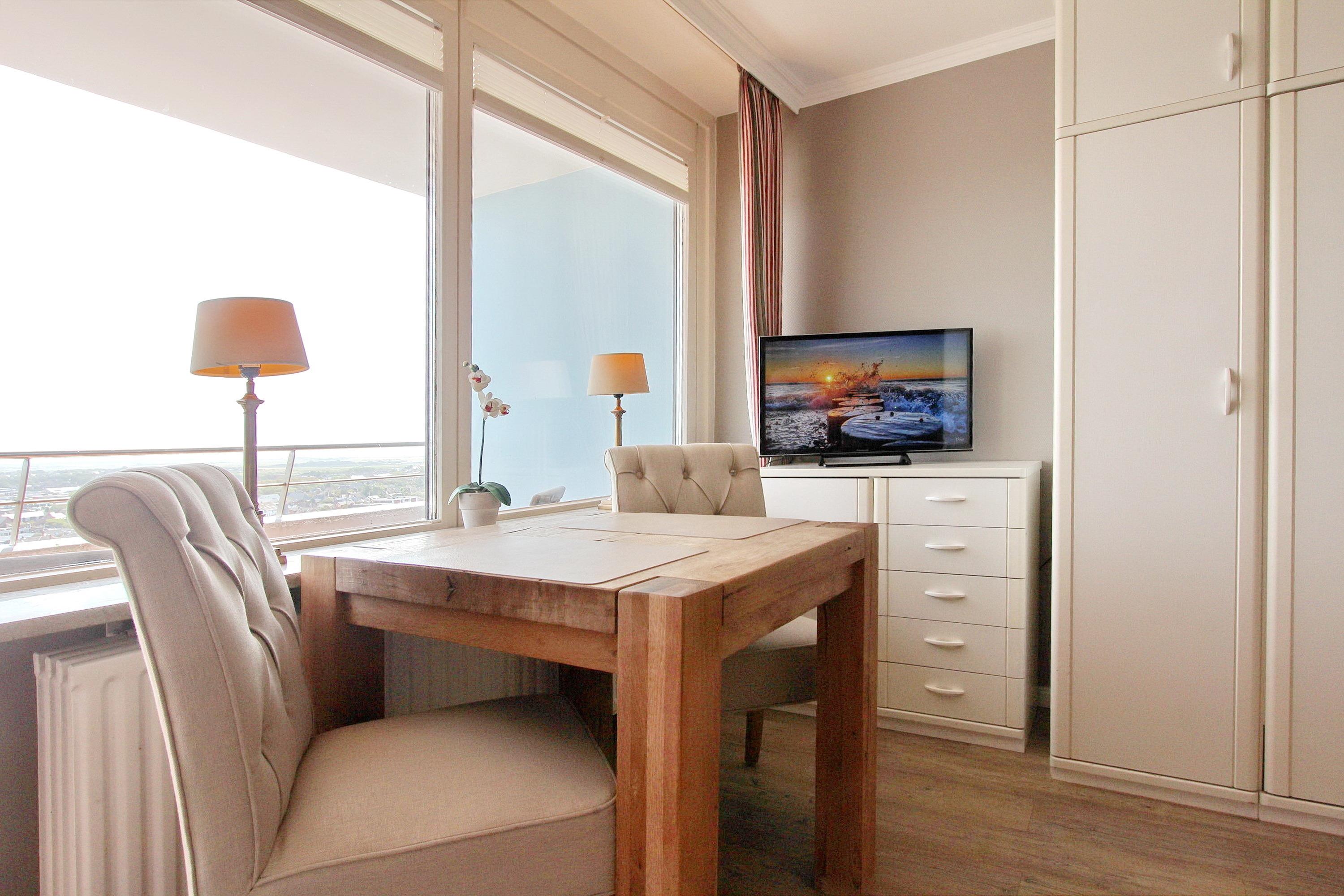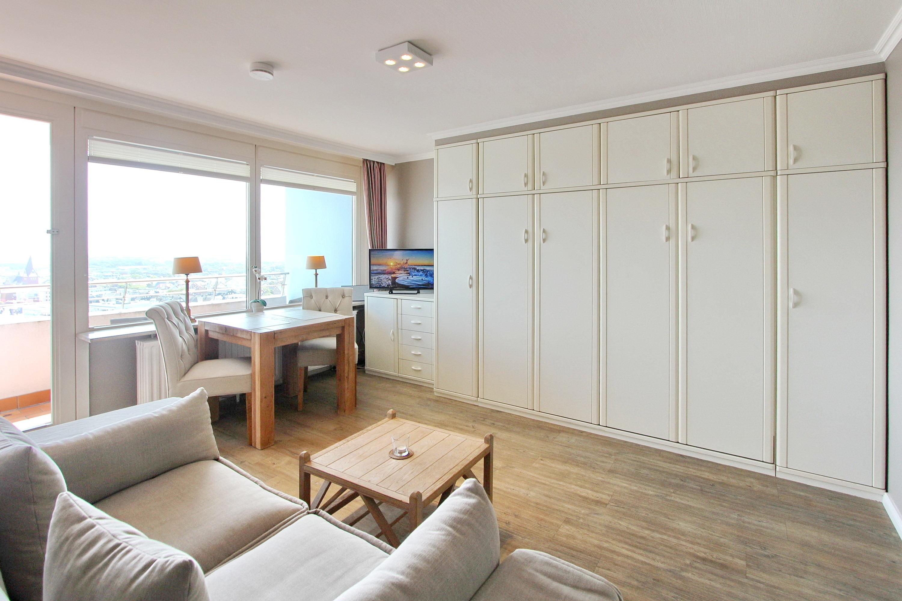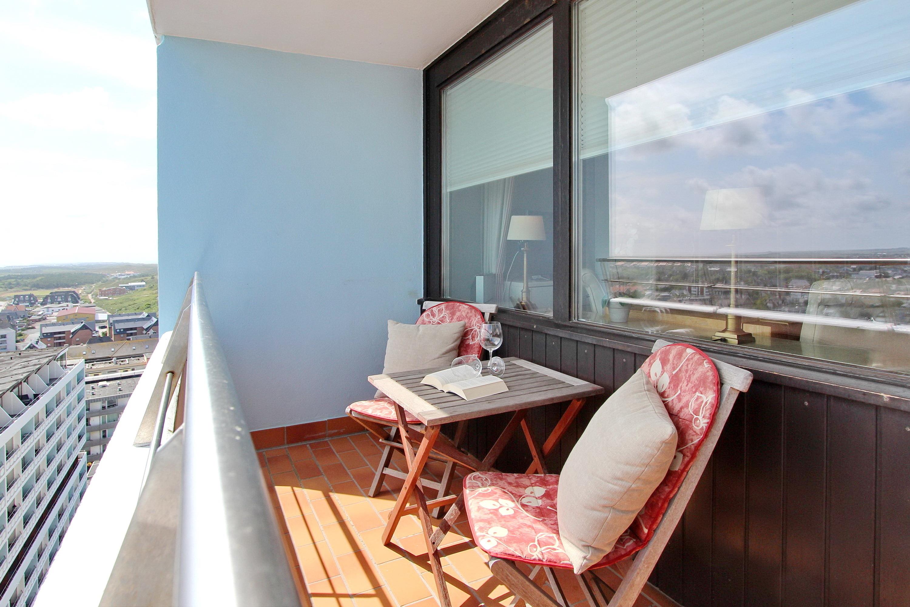 Moderne Ferienwohnung im 13. Stock mit Balkon und herrlichem Weitblick über Westerland auf Sylt.