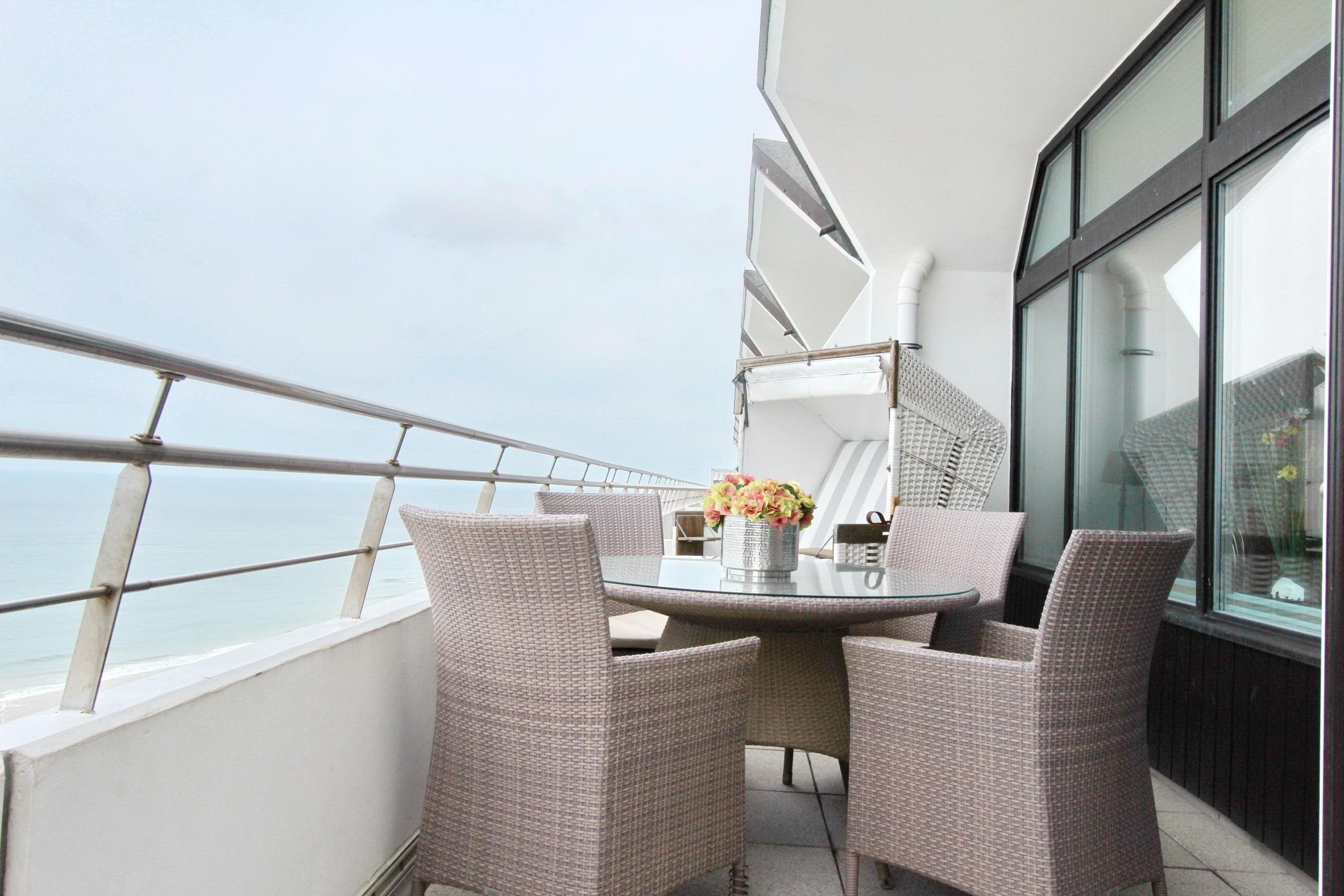 Helle 3-Zimmer-Penthousewohnung in Westerland mit Meerblick, Westdachterrasse und moderner Ausstattung für erholsame Tage auf Sylt.