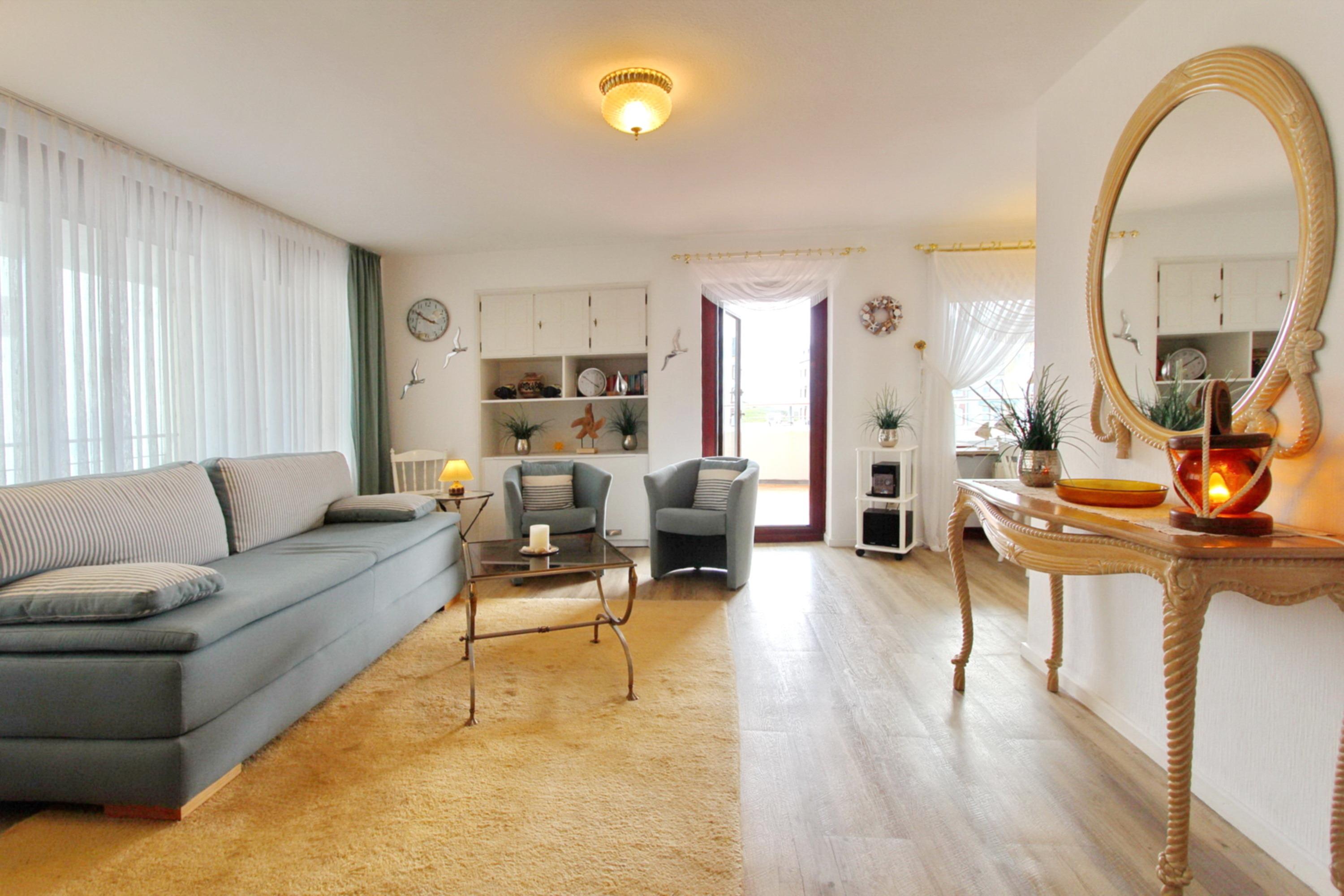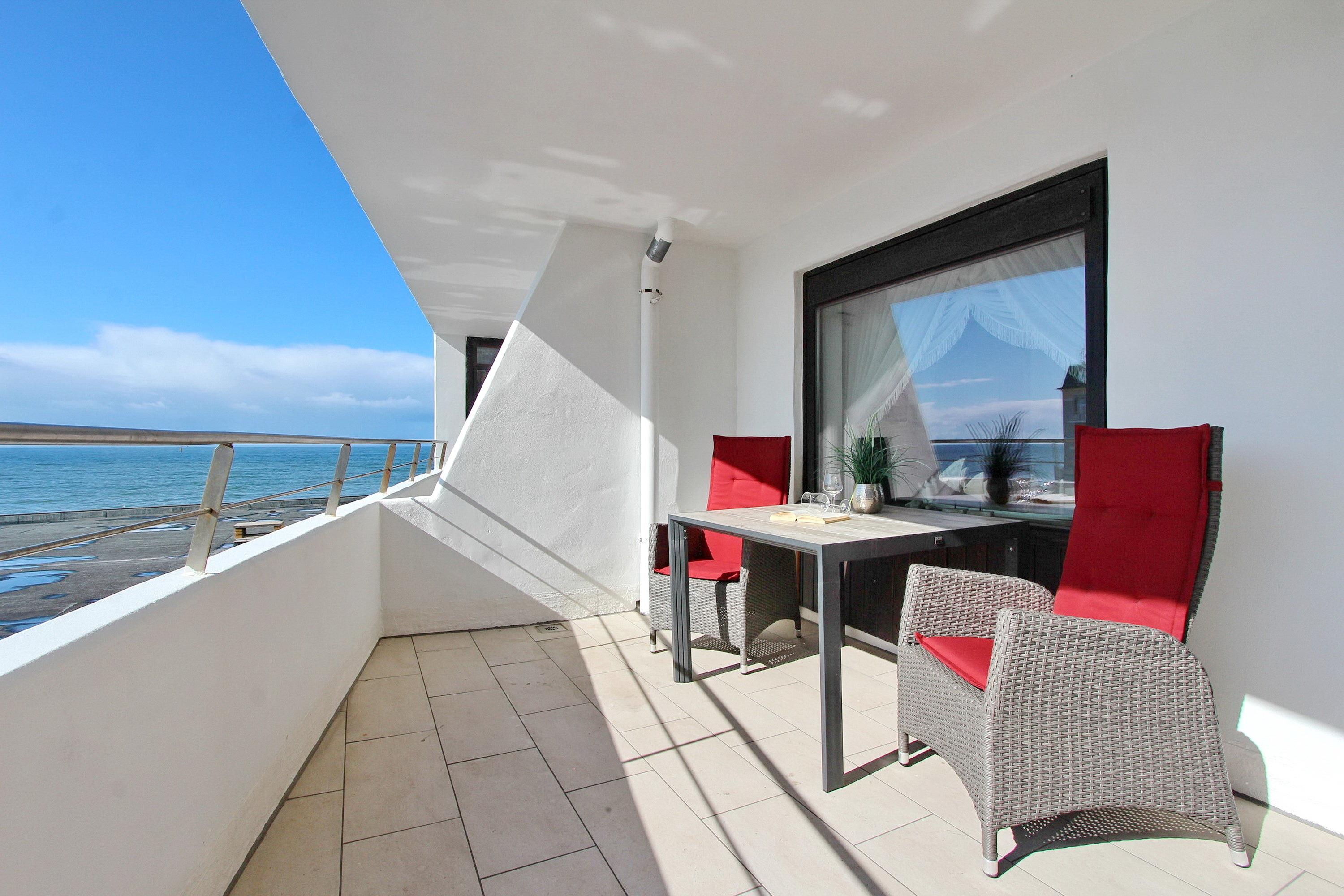 Moderne Wohnung mit Meerblick und Balkon in Westerland auf Sylt, ideal für einen entspannten Urlaub an der Nordsee.