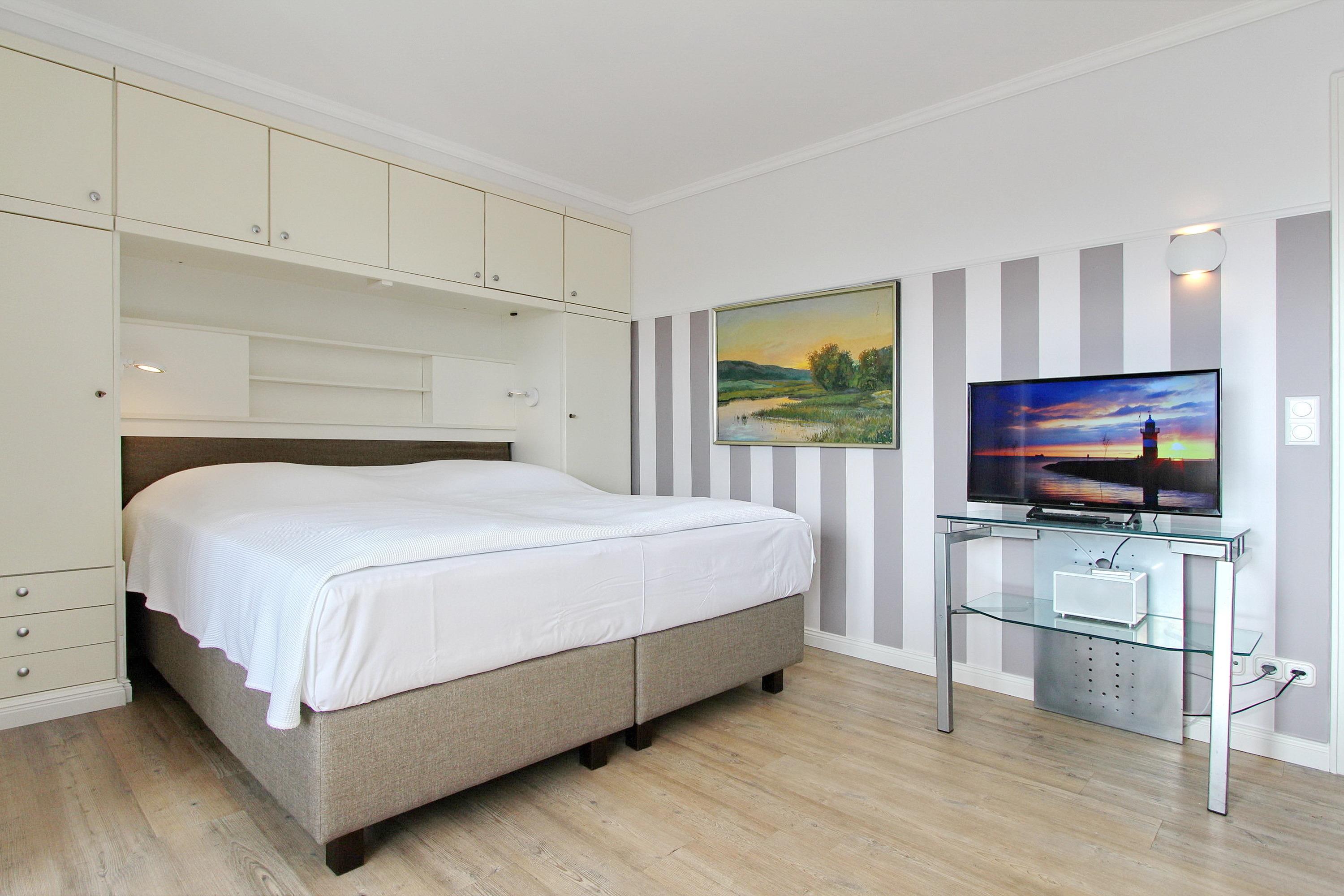 Helle Ferienwohnung in Westerland mit Strandnähe, Boxspringbett, moderner Küche und WLAN, ideal für erholsame Tage auf Sylt.