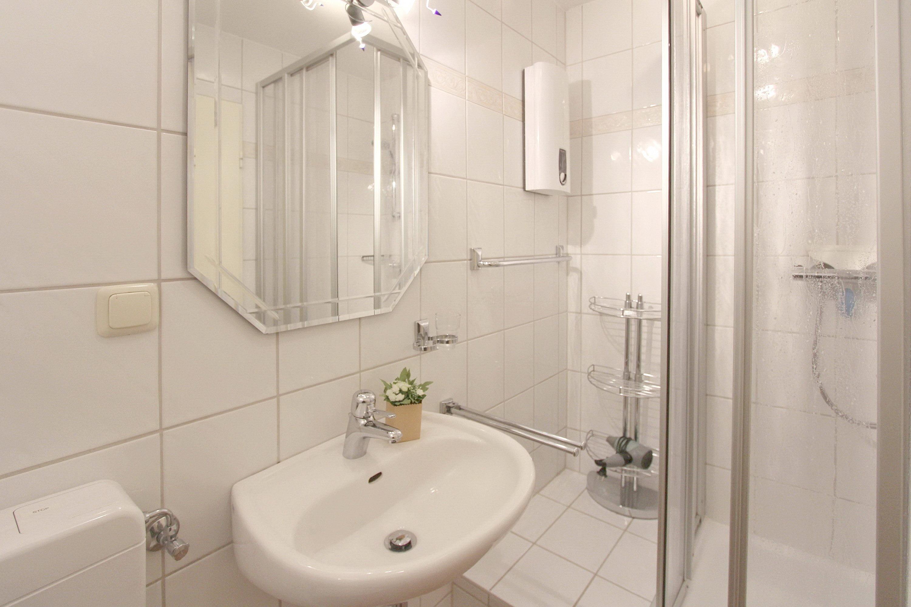 Im Holsteinischen Haus im Obererdgeschoss befindet sich diese hübsche Einzimmerwohnung im Innenstadtbereich von Westerland. In wenigen Minuten sind sie in der Fußgängerzone und an der Promenade, der Bäcker ist gleich um die Ecke. Der hell und freundlich eingerichtete Wohn-/Schlafraum verfügt über ein Doppelschrankbett, einen Essplatz mit 2 Stühlen, sowie eine Ledercouch mit Sessel. Der Balkon zur Westseite verfügt über Balkonmöbel und Auflagen. In der Wohnung wurde hochwertiger Fliesenboden verlegt. Um sich selbst zu verpflegen gibt es im Flur eine Einbauküche mit 2 Platten Ceranfeld. Das Badezimmer hat eine Dusche. Zur technischen Ausstattung dieser Nichtraucherwohnung gehört: ein Flachbildfernseher und ein Radio. Wohnungsgröße: ca. 25 m². Ein Pkw-Stellplatz ist inklusive und steht Ihnen in der Tiefgarage mit Doppelparksystem zur Verfügung. Die ausgehängten Betriebsanleitungen für die Nutzung der Garagen sind Bestandteil des Mietvertrages (nicht für alle PKWs geeignet).