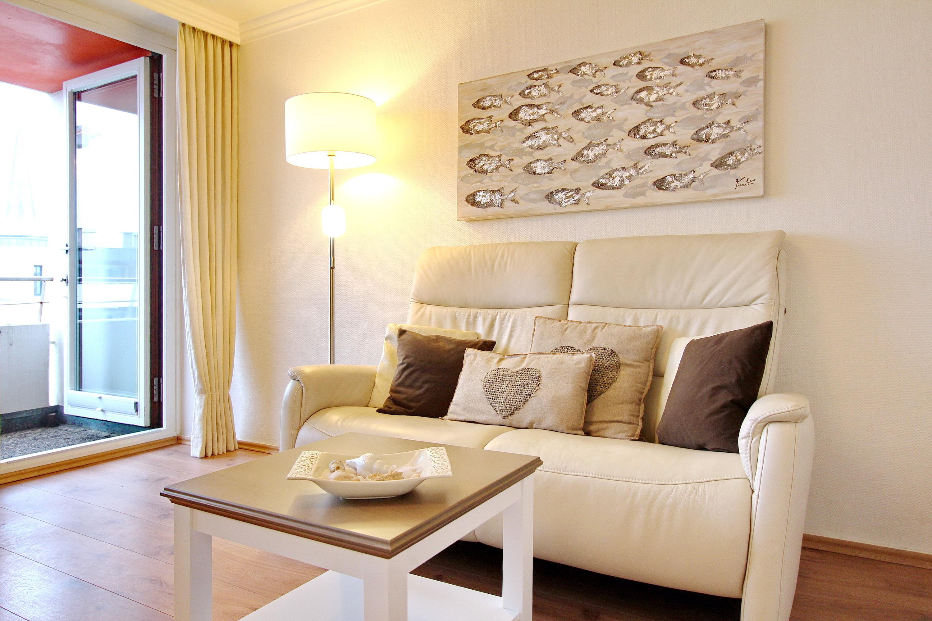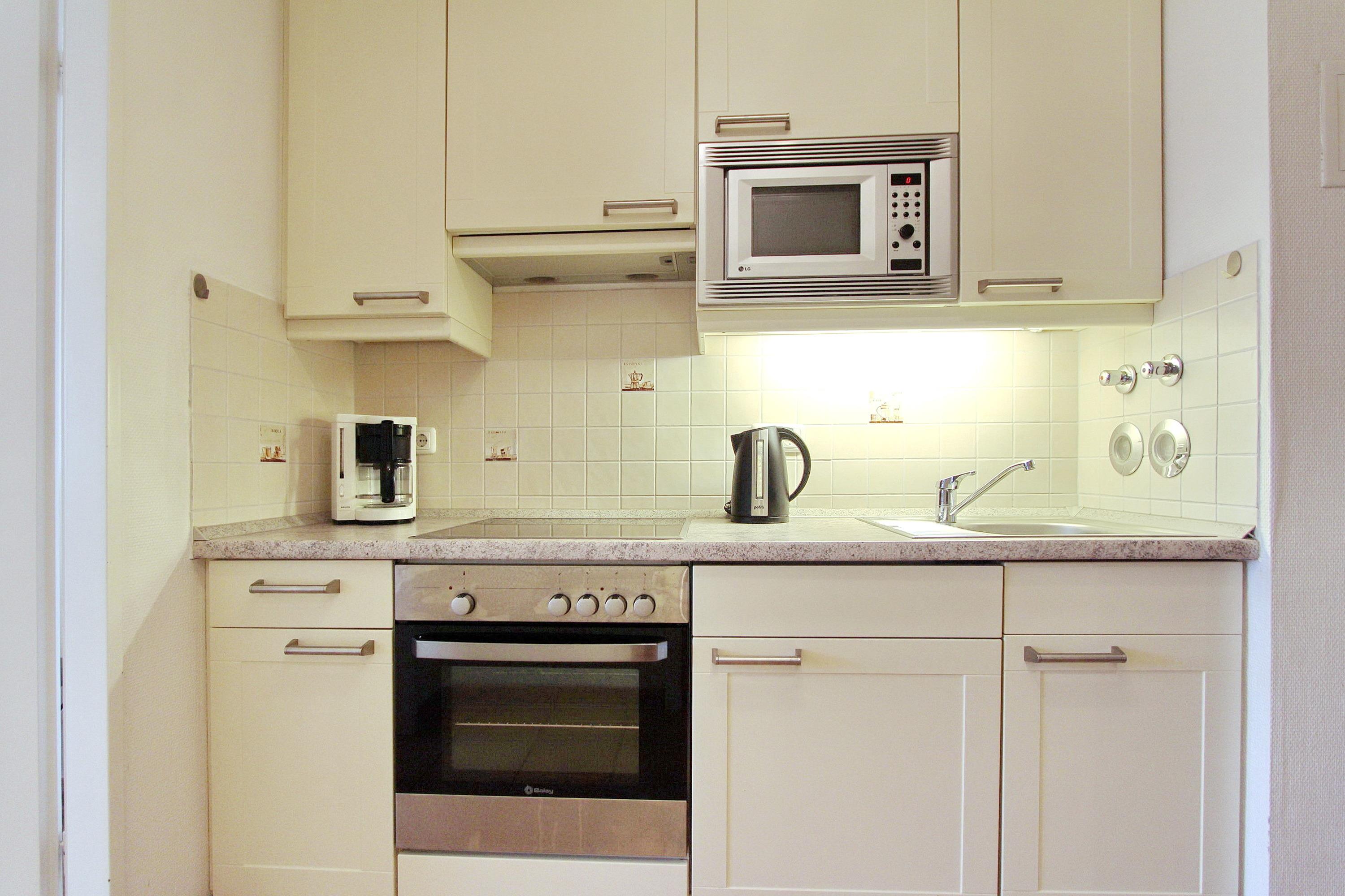 Hell und freundlich eingerichtete Einzimmerwohnung in der 2. Etage im Haus am Meer zur Landseite. Wenige Schritte trennen Sie vom Strand und dem Meer. Der kombinierte Wohn-Schlafraum ist ausgestattet mit einem Doppelschrankbett, einem Essplatz am Fenster mit 2 Stühlen, sowie einer Kunstledercouch. In der Wohnung wurde Laminatboden verlegt und auf Teppiche komplett verzichtet. In der Schrankwand gibt es einen großen Kleiderschrank mit ausreichend Stauraum für Ihre persönlichen Dinge. Vom Balkon aus können Sie das Treiben auf der Friedrichstraße beobachten. Balkonmöbel mit Auflagen sind vorhanden. Das Badezimmer hat eine Dusche, einen Fön und einen Handtuchtrockner. In der Küchenzeile im Flur mit Cerankochfeld (4 Herdplatten), Backofen und Mikrowelle können Sie sich selbst verpflegen. Zur technischen Ausstattung dieser Wohnung gehört: ein Flachbildfernseher und ein Radio mit CD Spieler. Ein kostenfreier WLAN Zugang (WEG Haus am Meer - Passwortfrei - ohne Gewähr) ist vorhanden. Wohnungsgröße: ca. 30 m².