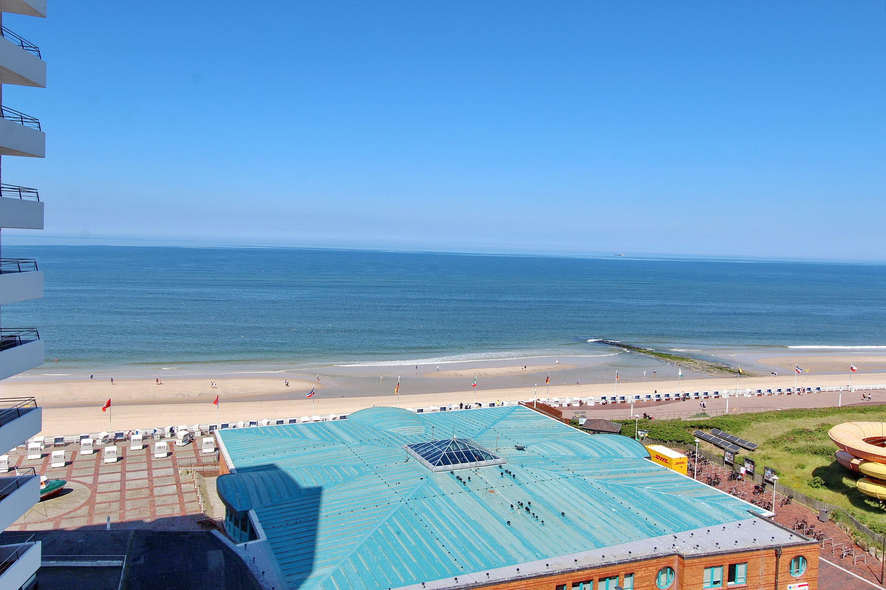 Diese stilvoll eingerichtete Einzimmerwohnung in der 9. Etage des Hauses Sylter Welle bietet einen atemberaubenden Panoramablick auf den Strand und die endlose Weite der Nordsee. Vom Westbalkon aus genießen Sie traumhafte Sonnenuntergänge und direkten Blick auf die Strandpromenade – ideal für entspannte Abende mit Meeresrauschen.