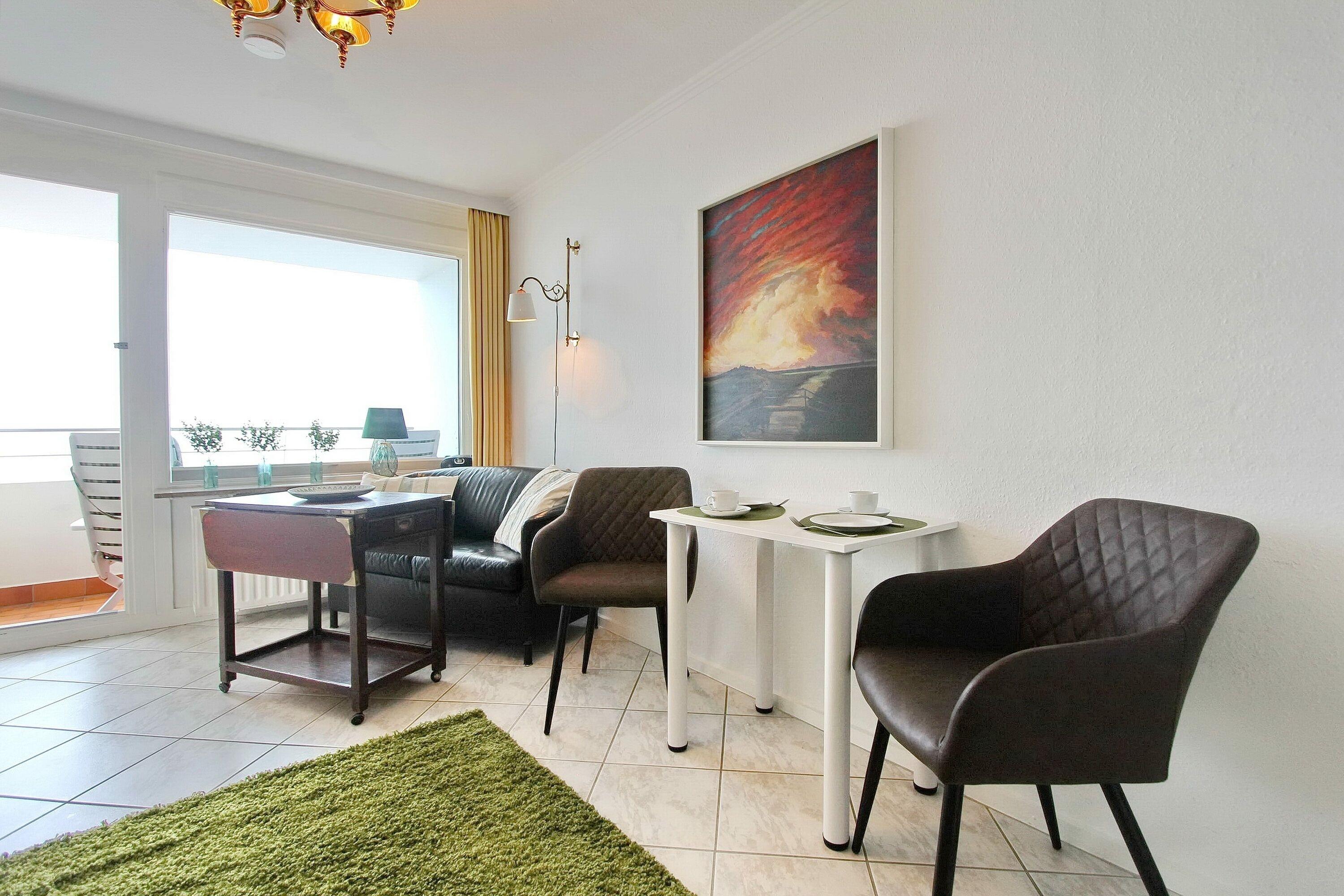 Gemütliche Ferienwohnung in Westerland mit herrlichem Meerblick und Balkon im Haus Metropol, ideal für einen entspannten Urlaub zu zweit.